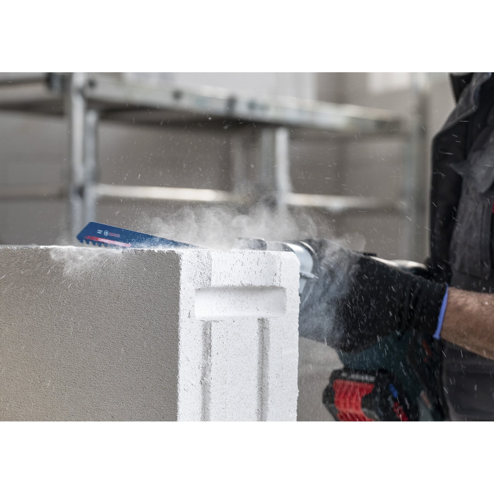 Das Bosch Expert ‘Aerated Concrete’ Säbelsägeblatt ist ein spezielles Blatt für Porenbetonblöcke. Dank der Bosch Carbide Technology können die Zähne diese Materialien Tag für Tag schneiden.