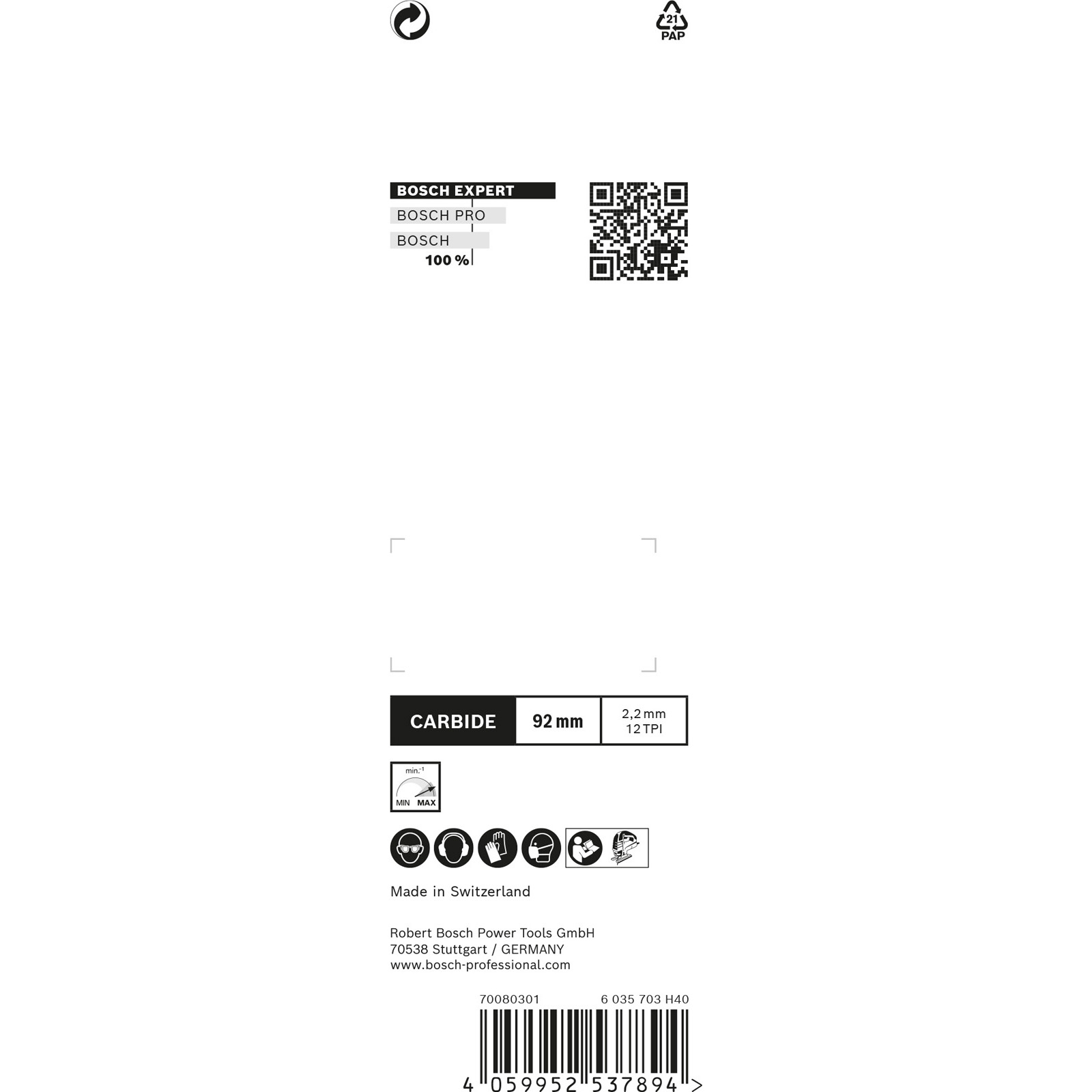 - Herausragende Lebensdauer durch Bosch Carbide Technology