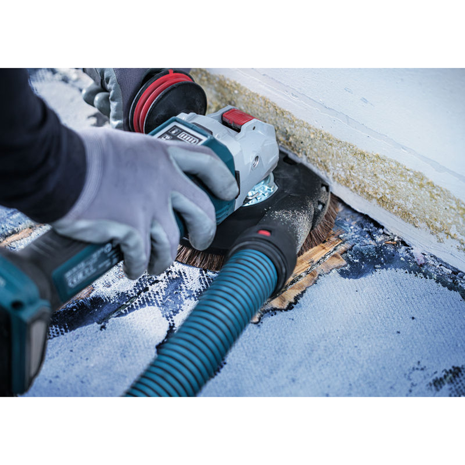 - Bei der Verwendung eines Winkelschleifers mit Schleifkopf musst du kurz anhalten, um zu sehen, wieviel du schon geschafft hast.