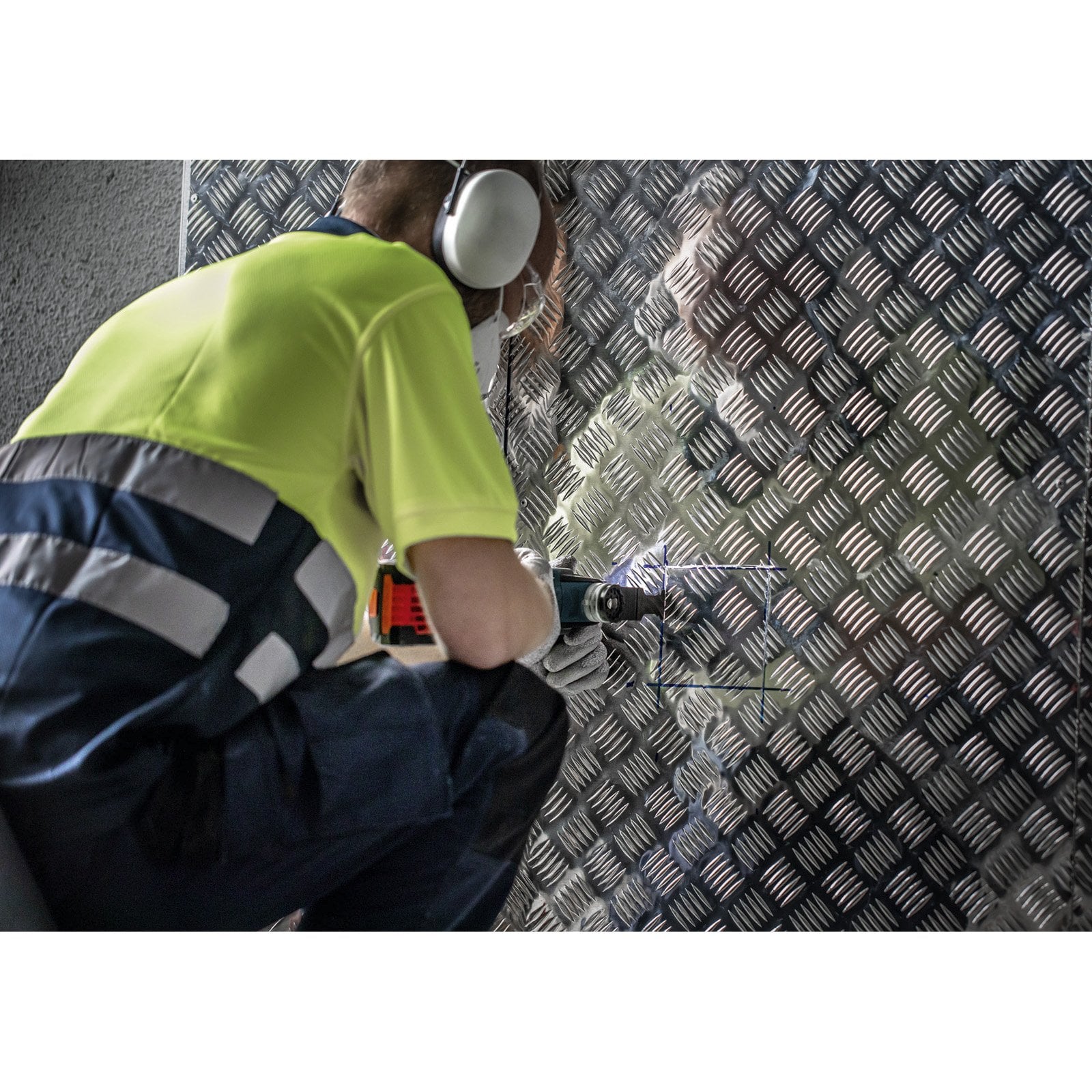 - Ideal für Tauchschnitte und Präzisionsschnitte in einer Vielzahl von Materialien, einschließlich Blechen; Verbundmaterialien; Zementfaserplatten, Ziegelsteine und andere Schleifmaterialien.