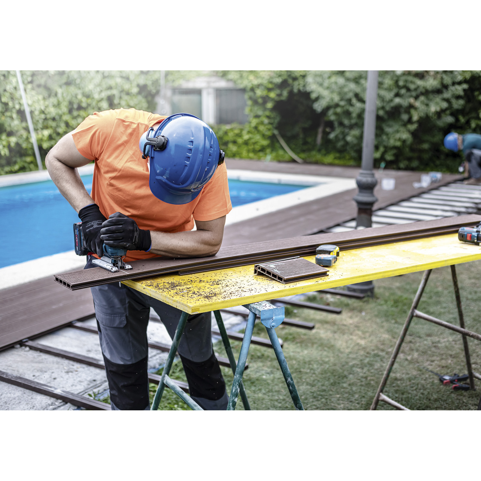 - Ideal für gerade Schnitte in Feststoffoberflächenplatten, die für den Bau von Feststoffoberflächen in Küchen und Bädern erforderlich sind; gerade Schnitte in WPC-Platten (Verbundstoffe aus Holz und Kunststoff) beim Terrassenbau.