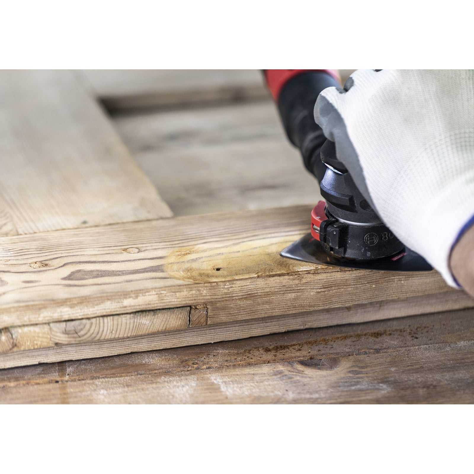 Kleine, aber harte Schleifarbeiten zum Entfernen von altem Material und zum Vorbereiten von Oberflächen sind mit herkömmlichen Schleifmaschinen oder von Hand fast unmöglich zu erledigen. Selbst wenn du die Oberfläche erreichen kannst, reißt das Schleifpapier ein. Mit der Expert Sanding Plate kannst du jedoch mit deinem oszillierenden Multifunktionswerkzeug Ecken erreichen und schwierige Materialien schleifen.