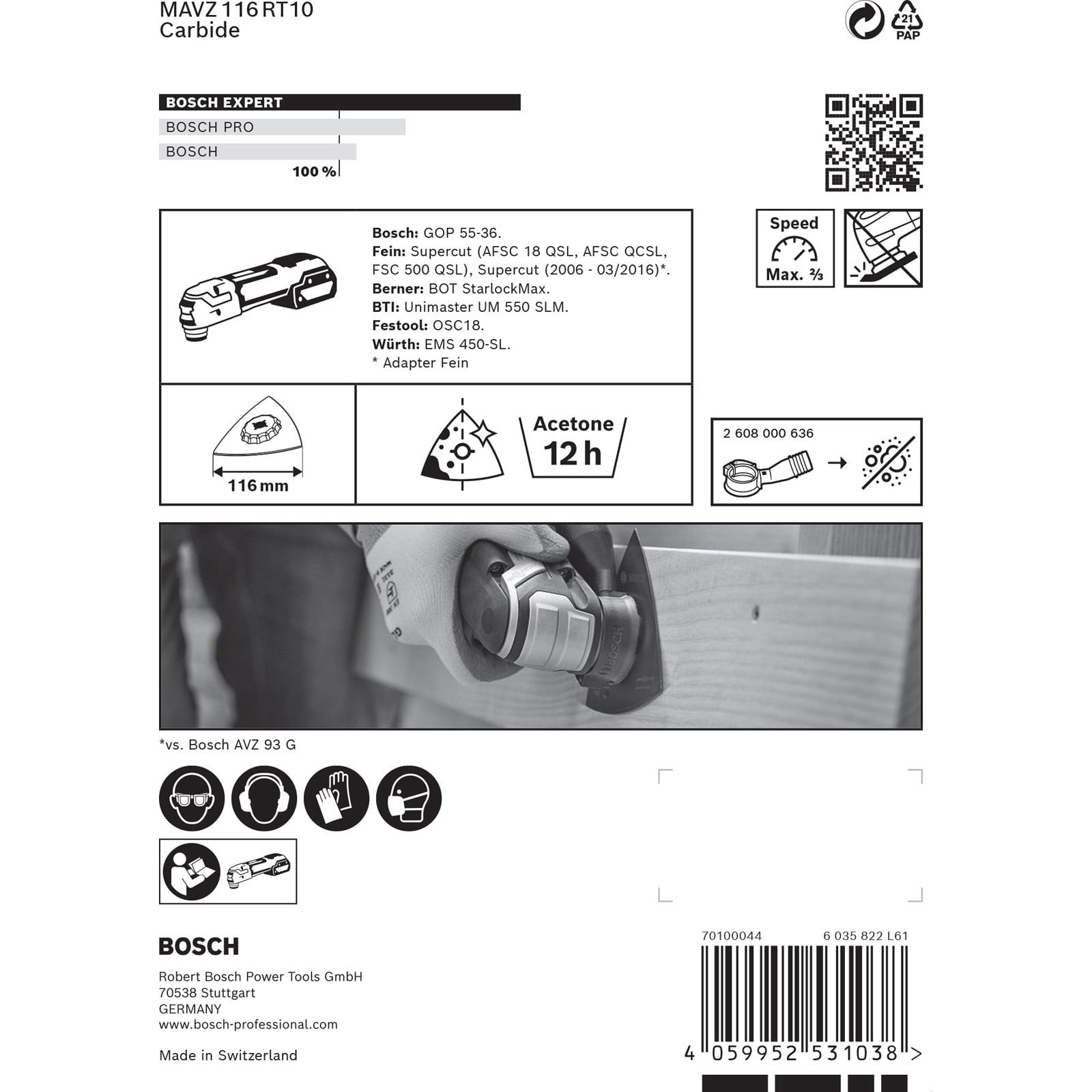 - Herausragende Lebensdauer durch Bosch Carbide Technology