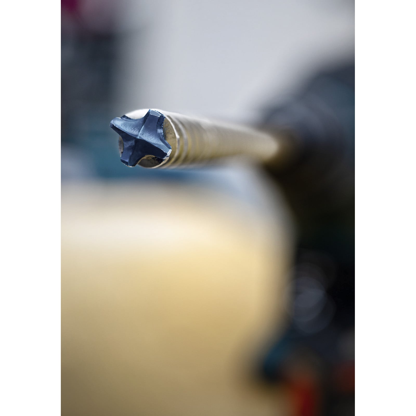 Dank der Bosch Carbide Technology und des Voll-Carbide-Kopfs hält der Expert SDS max-8X weitaus länger als normale Hammerbohrer. Er dringt effektiv durch die Armierung, sodass du nicht stoppen, neu zielen oder den Bohrer wechseln musst, wenn du auf Stahl stößt.