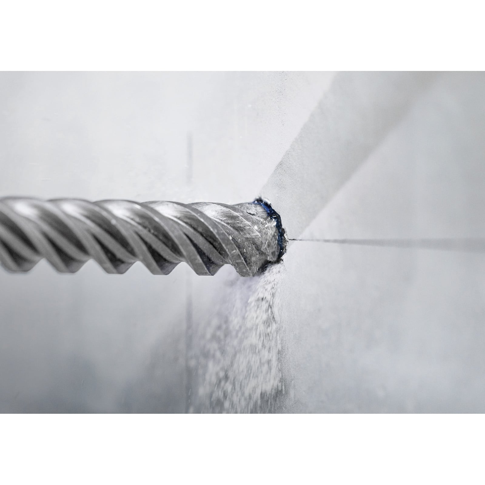 Das Bohren durch Stahlbeton ist eine schwierige Aufgabe, die den Hammerbohrern viel abverlangt. Sogar 4-Schneider nutzen sich schnell ab. Beim Wechseln des Zubehörs und beim Kaufen von Verbrauchsmaterialien kommt es zu Ausfallzeiten. Der Voll-Carbide-Kopf auf dem Expert SDS max-8X ist ein fortschrittlicher 4-Schneider, der aus einem einzigen Stück des härtesten Metalls besteht: Es verklemmt nicht und zeigt keine Schwäche beim Schlagbohren.
