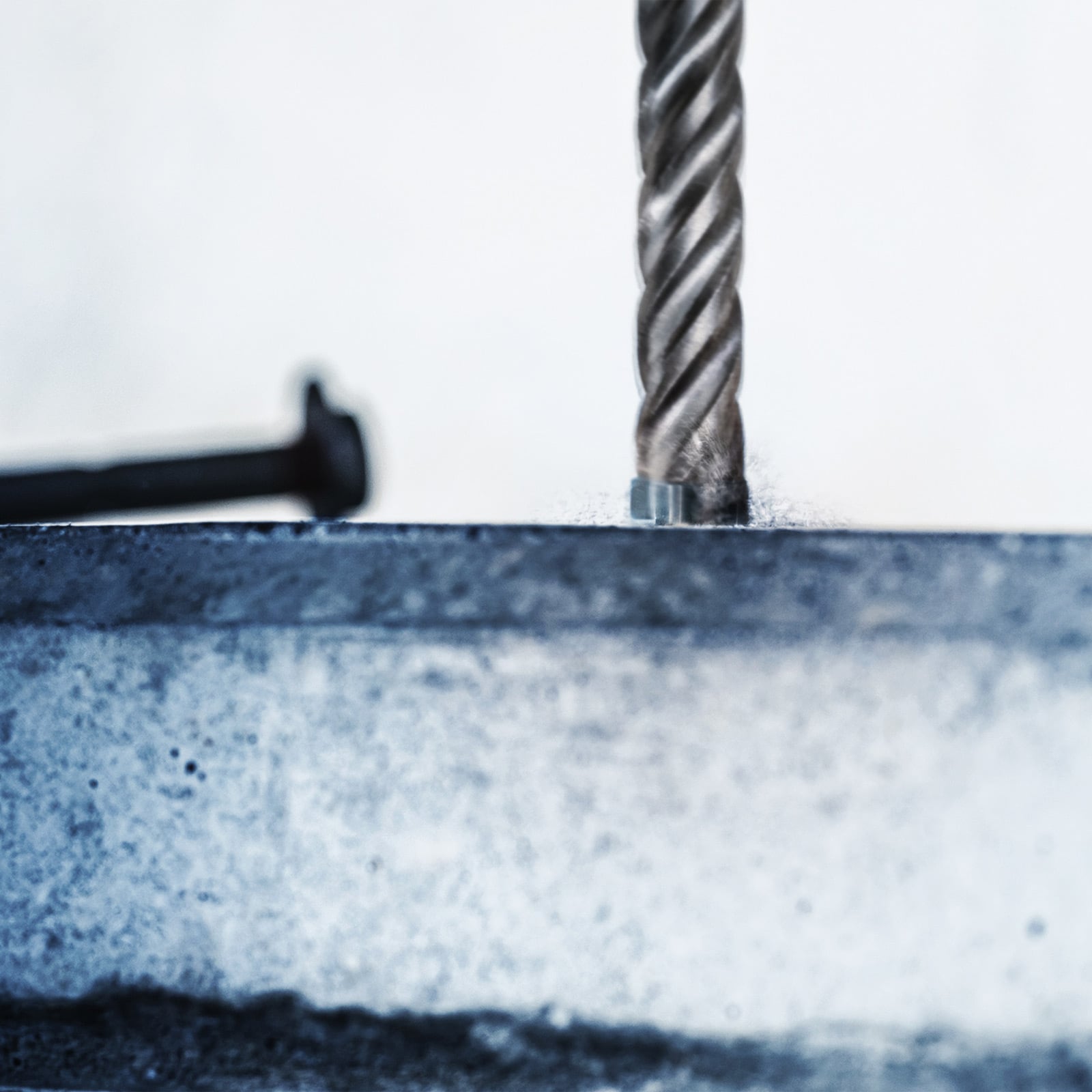 - Ideal zum Bohren von Löchern in Stahlbeton, z. B. zum Verankern von Inneninstallationen wie Klimaanlagen, Heizungsrohre, elektrische Leitungen und Lampen.