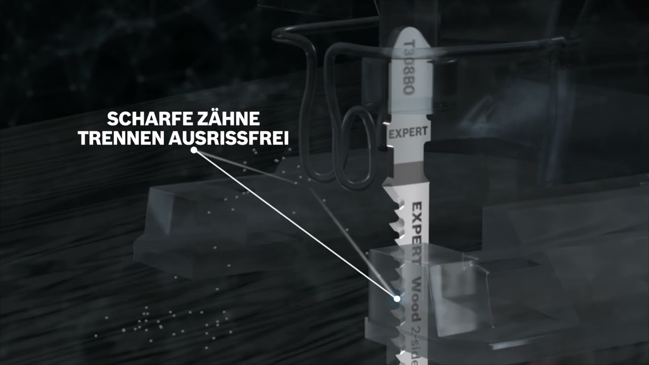 Unter Tischlern und Schreinern war es schon immer eine Kunst sicherzustellen, dass der sichtbare Teil des Arbeitsmaterials die „saubere Seite“ eines Stichsägenschnitts zeigt. Manchmal muss man das Werkstück zum Sägen umdrehen oder sägt von der Unterseite, um die gewünschte Schnittqualität auf der Sichtseite zu haben. Oder du verwendest das Expert ‘Wood 2-side clean’, welches dank seiner Zahngeometrie auf beiden Seiten einen perfekten, ausrissfreien Schnitt bietet.