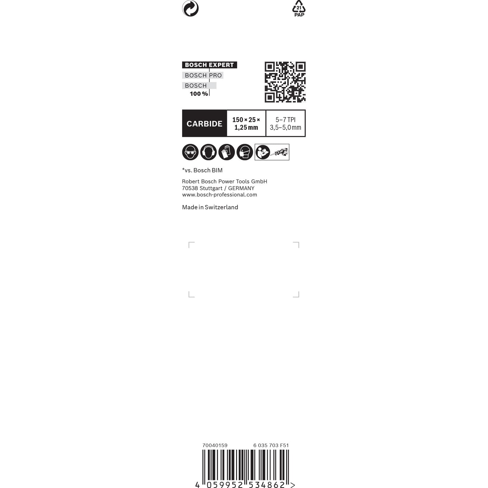 Für die härtesten Abrissarbeiten hat Bosch das Expert ‘Wood with Metal Demolition’ entwickelt. Durch die progressive Zahnteilung stellt eine Änderung der Materialdicke kein Hindernis mehr dar. Die einzeln verstärkten Zahnschultern halten den schlimmsten Stößen von in Holz eingebundenem hochfestem Stahl stand. Und Carbide durchdringt sowieso jedes Material mühelos.