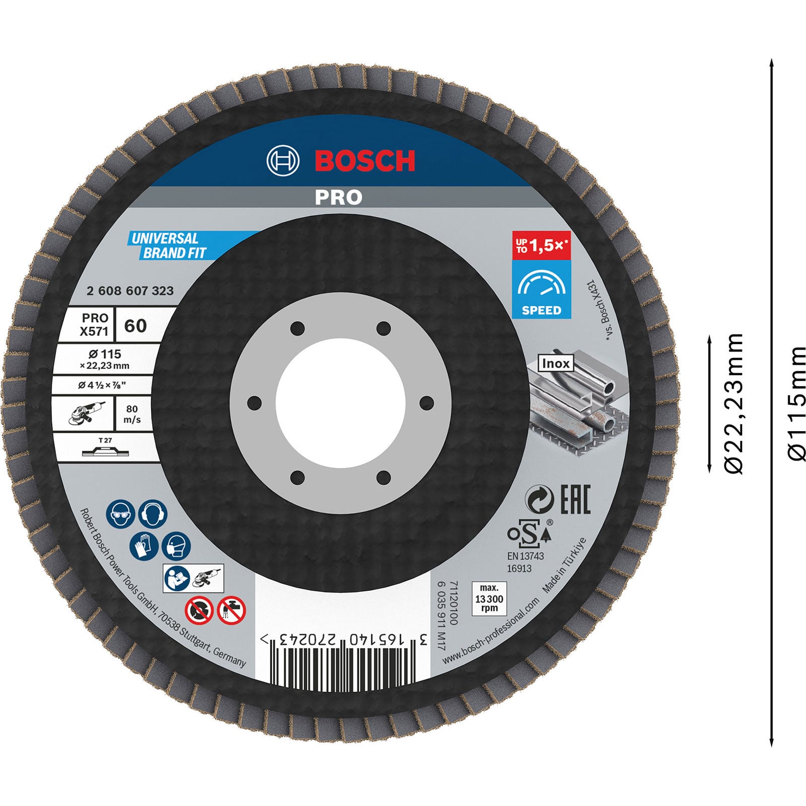 "Bosch PRO X571 Fächerschleifscheibe 115 mm G60 - 2608607323"