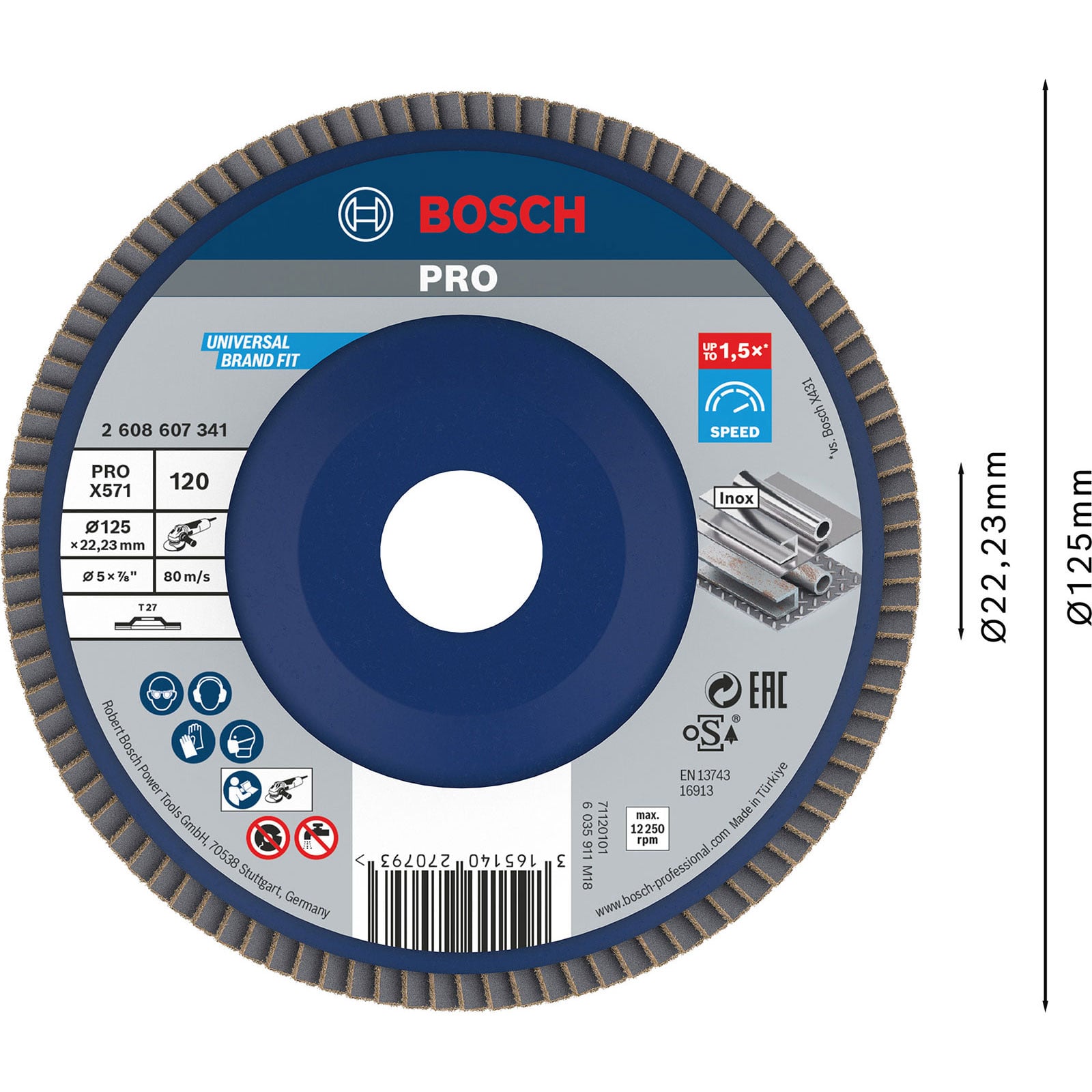 "Bosch PRO X571 Fächerschleifscheibe 125 mm G120 - 2608607341"
