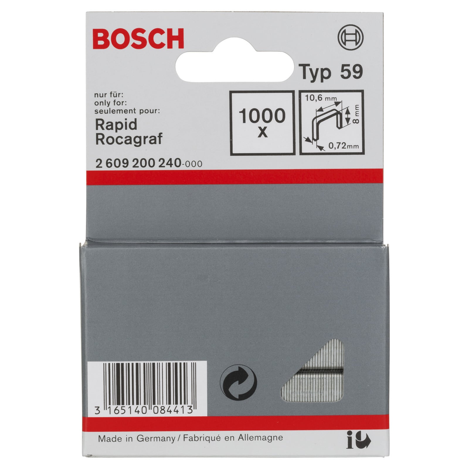 "Bosch 1.000x Feindrahtklammer Typ 59, 10,6 x 0,72 x 8 mm - 2609200240"