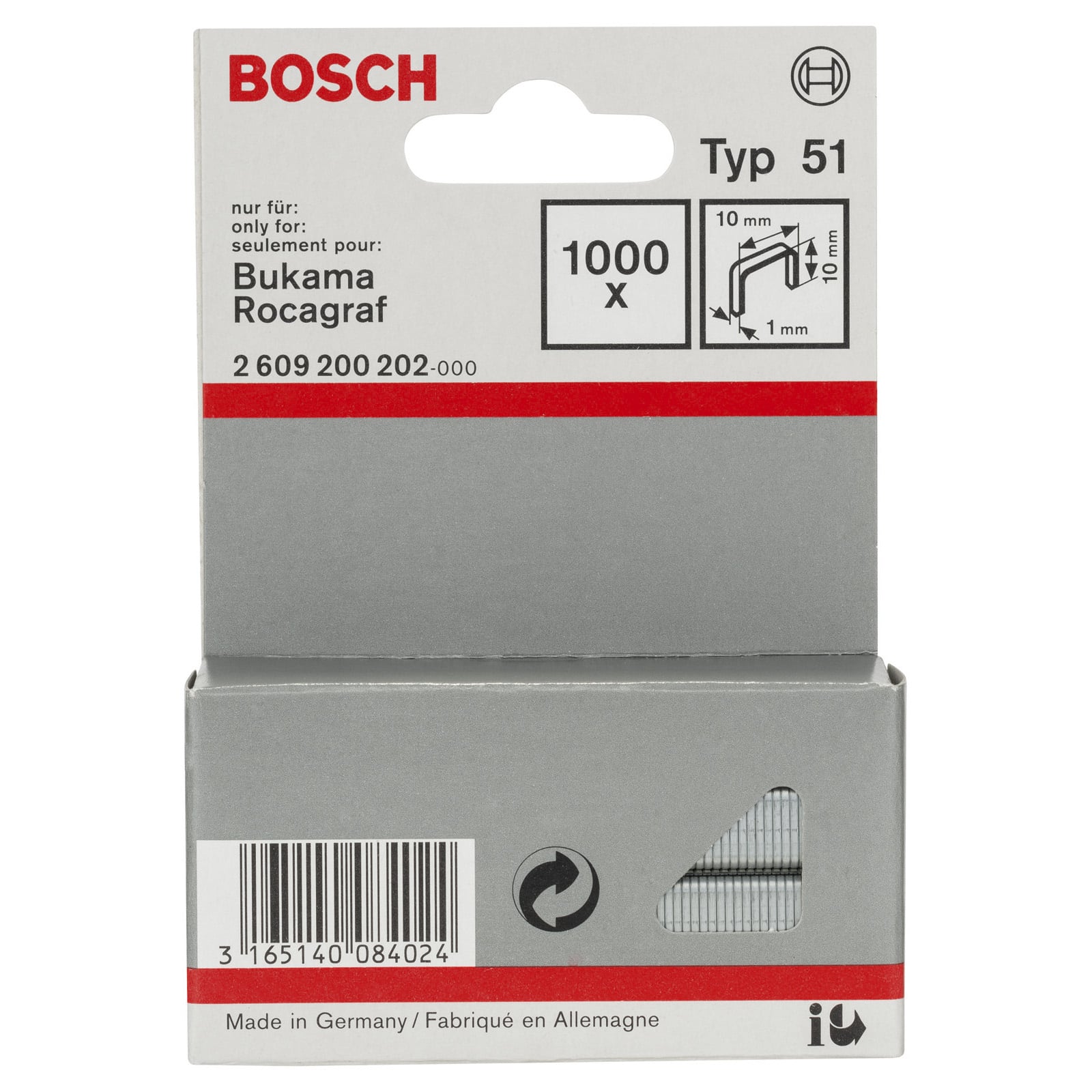 - 1x Bosch Flachdrahtklammer Typ 51, 10 x 1 x 10 mm
