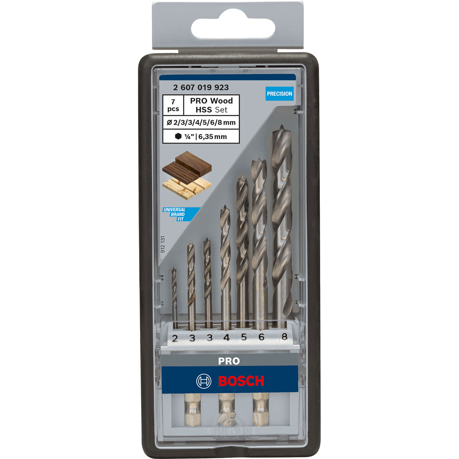 - 1x Bosch PRO Wood HSS Holzspiralbohrer-Set. 7-tlg.