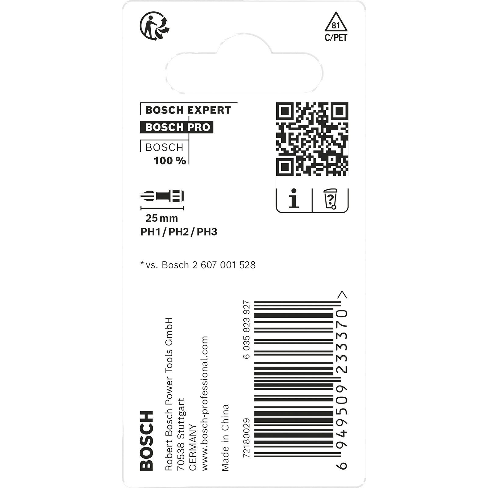- 1x Bosch PRO Phillips Impact Bit PH1; PH2; PH3 25 mm 3-tlg.