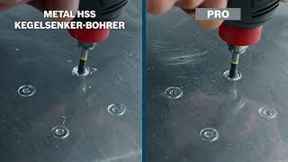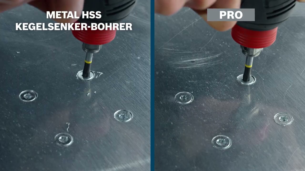 - Der Kegelsenker aus geschliffenem Werkzeugstahl erzeugt sogar beim Arbeiten mit Holz oder Kunststoff Oberflächen bester Qualität.