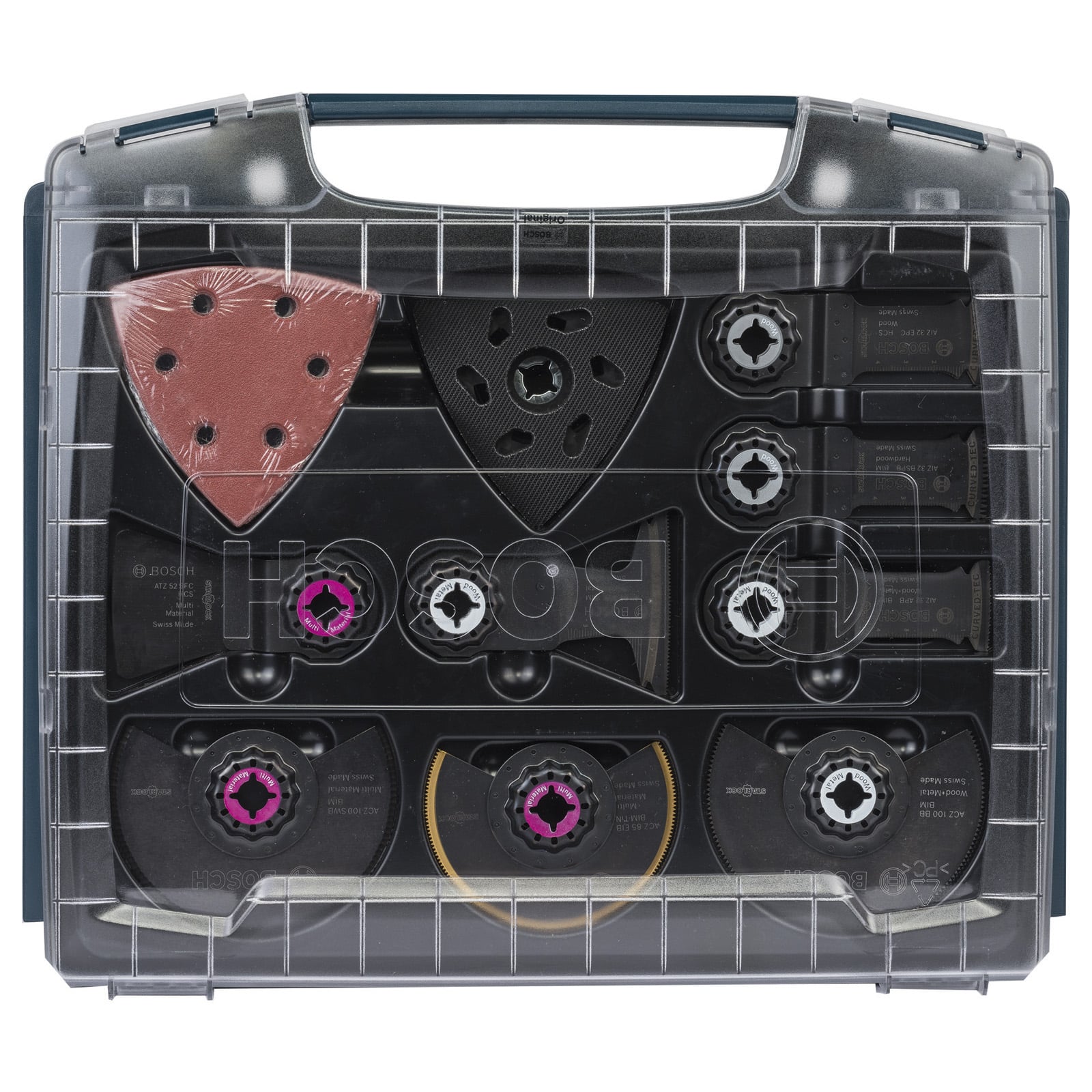 - Set mit Starlock-Zubehören zum Sägen, für Tauchschnitte, zum Schleifen und zum Schaben verschiedener Materialen