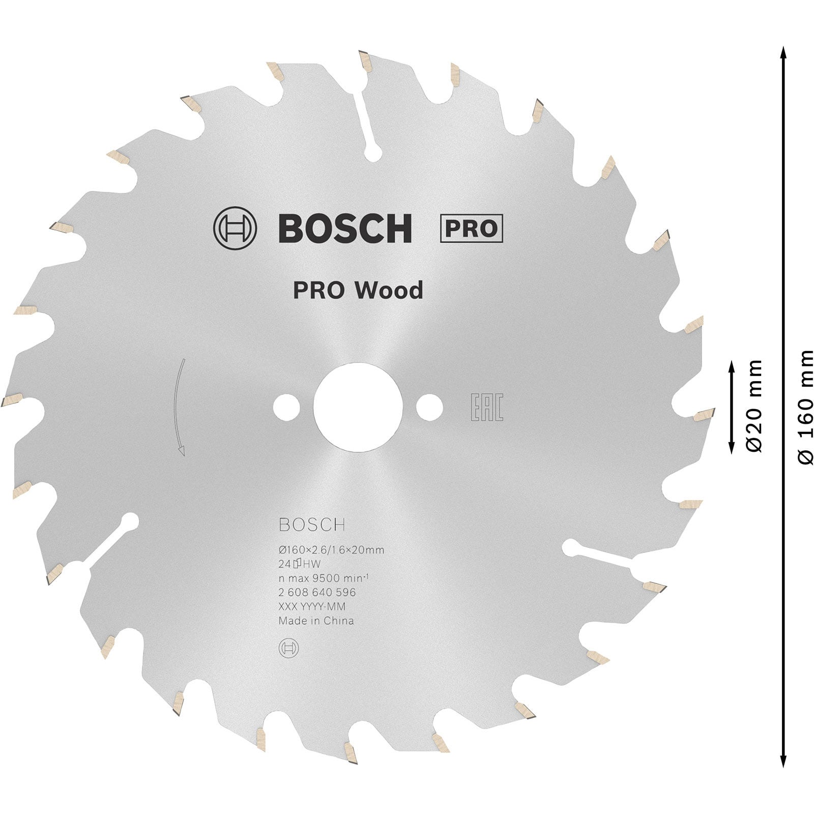 "Bosch PRO Wood Kreissägeblatt 160 x 2,6 x 20 mm - 2608640596"
