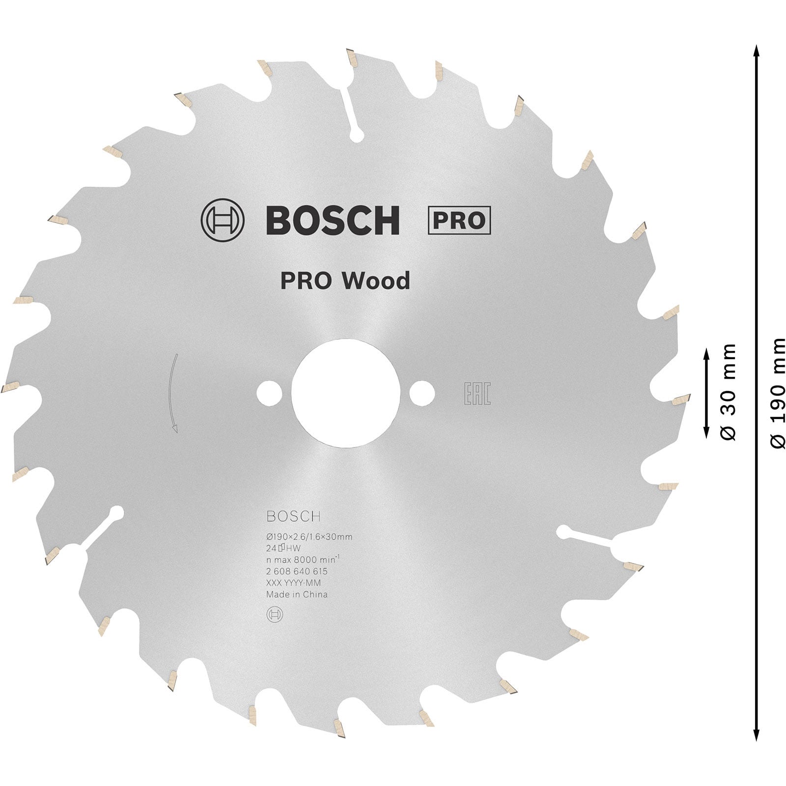 "Bosch PRO Wood Kreissägeblatt 190 x 2,6 x 30 mm - 2608640615"