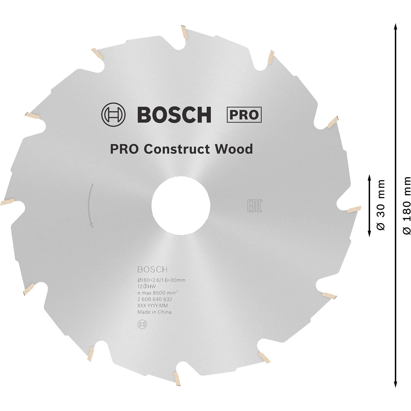 "Bosch PRO Construct Wood Kreissägeblatt 180 x 2,6 x 30 mm - 2608640632"