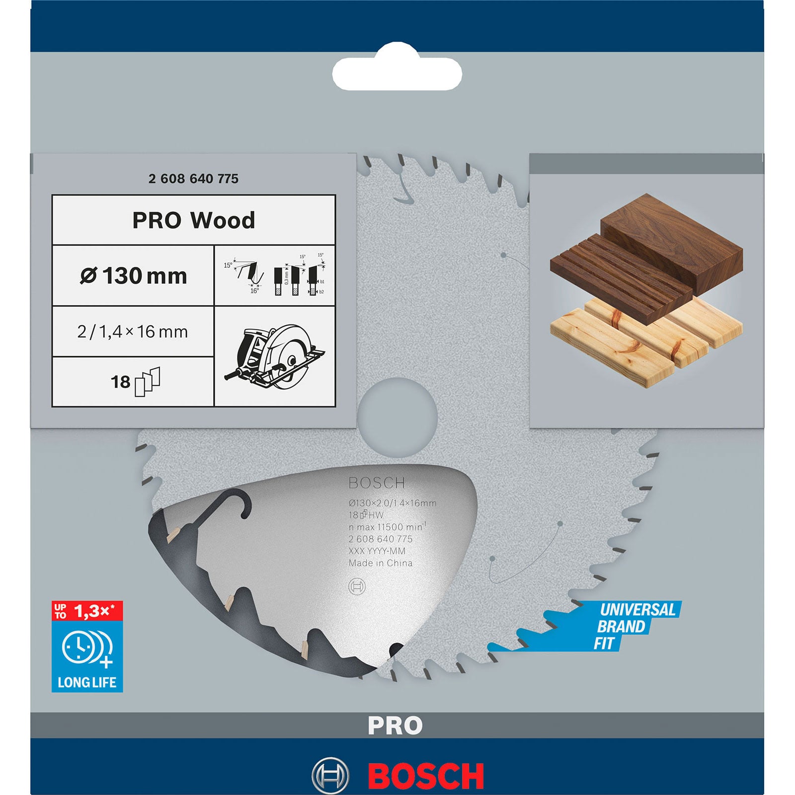 - 1x Bosch PRO Wood Kreissägeblatt 130 x 2 x 16 mm