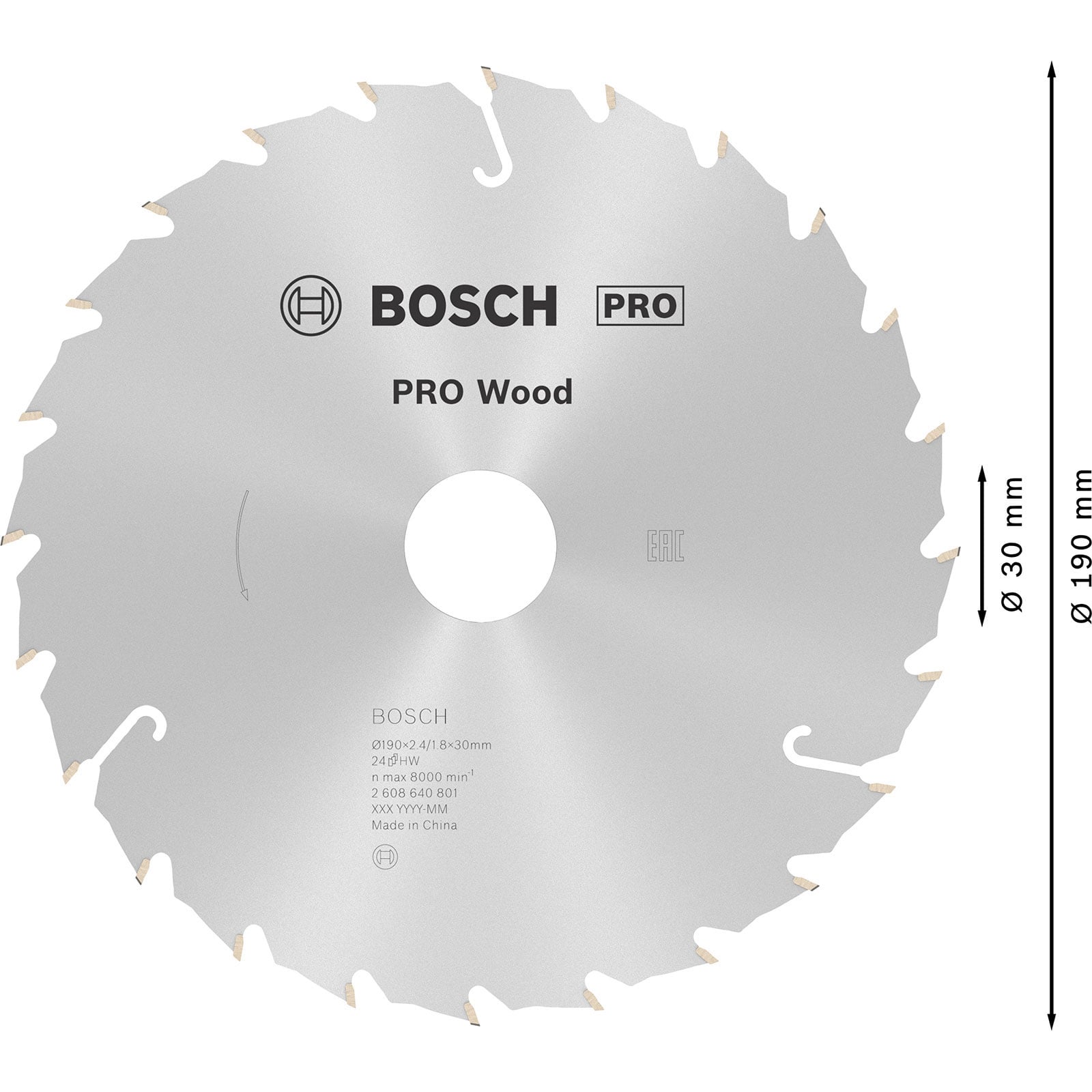 "Bosch PRO Wood Kreissägeblatt 190 x 2,4 x 30 mm - 2608640801"