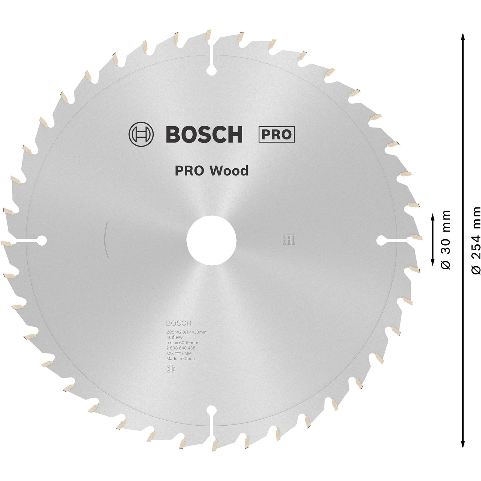 "Bosch PRO Wood Kreissägeblatt 254 x 2 x 30 mm - 2608640438"
