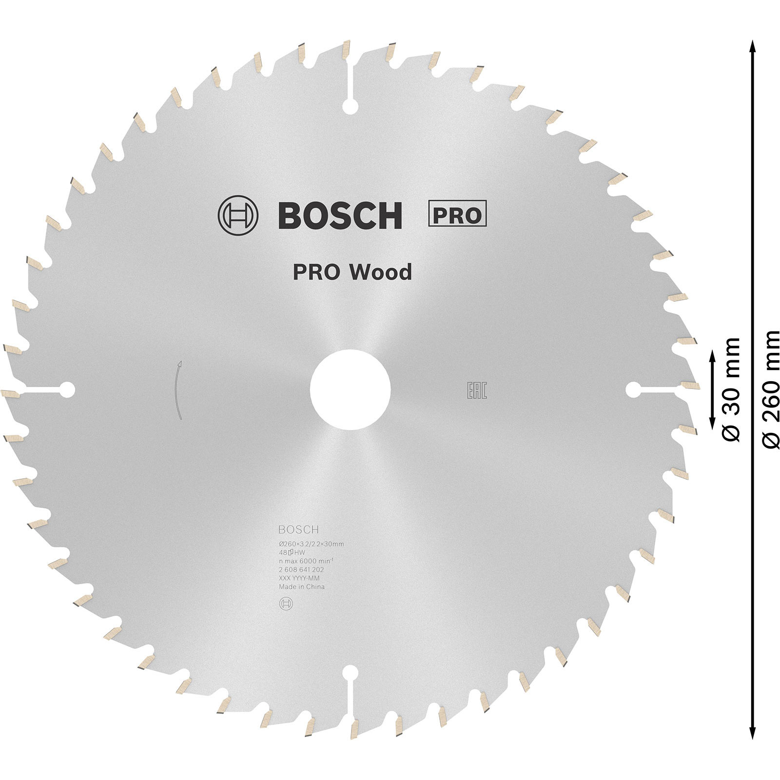 "Bosch PRO Wood Kreissägeblatt 260 x 3,2 x 30 mm - 2608641202"