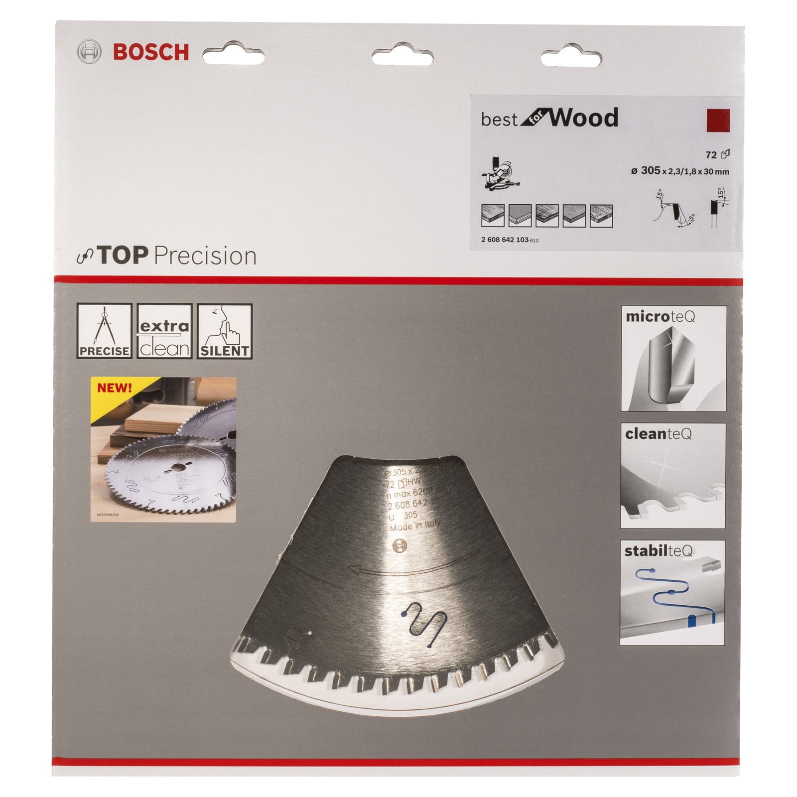 - 1x Bosch Kreissägeblatt Top Precision Best for Wood, 305 x 30 x 2,3 mm, 72 - 2608642103