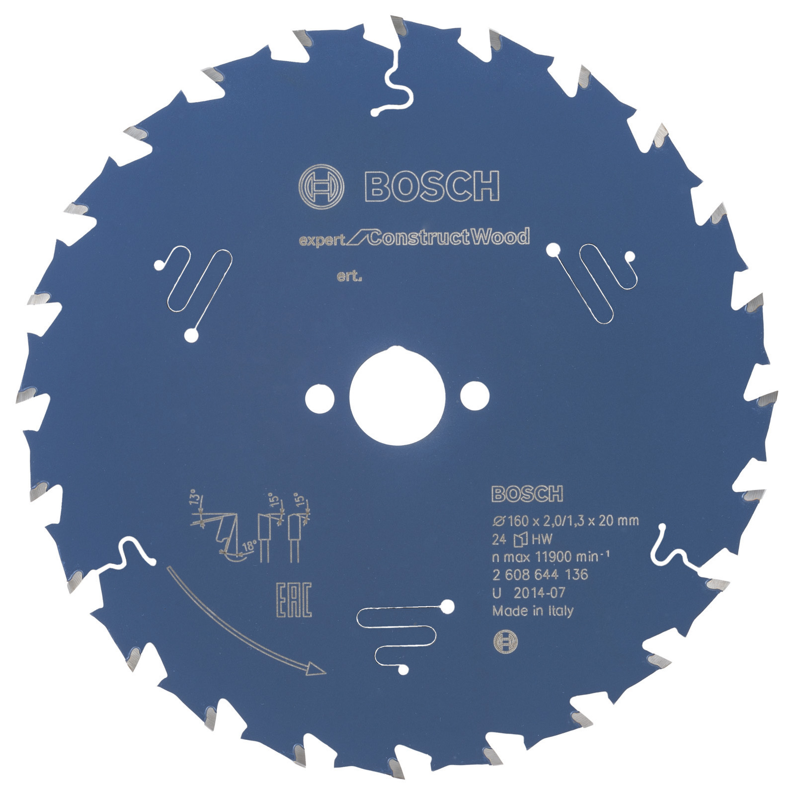 "Bosch Kreissägeblatt Expert for Construct Wood für Handkreissägen 160 x 20 x 2 mm 24 - 2608644136"