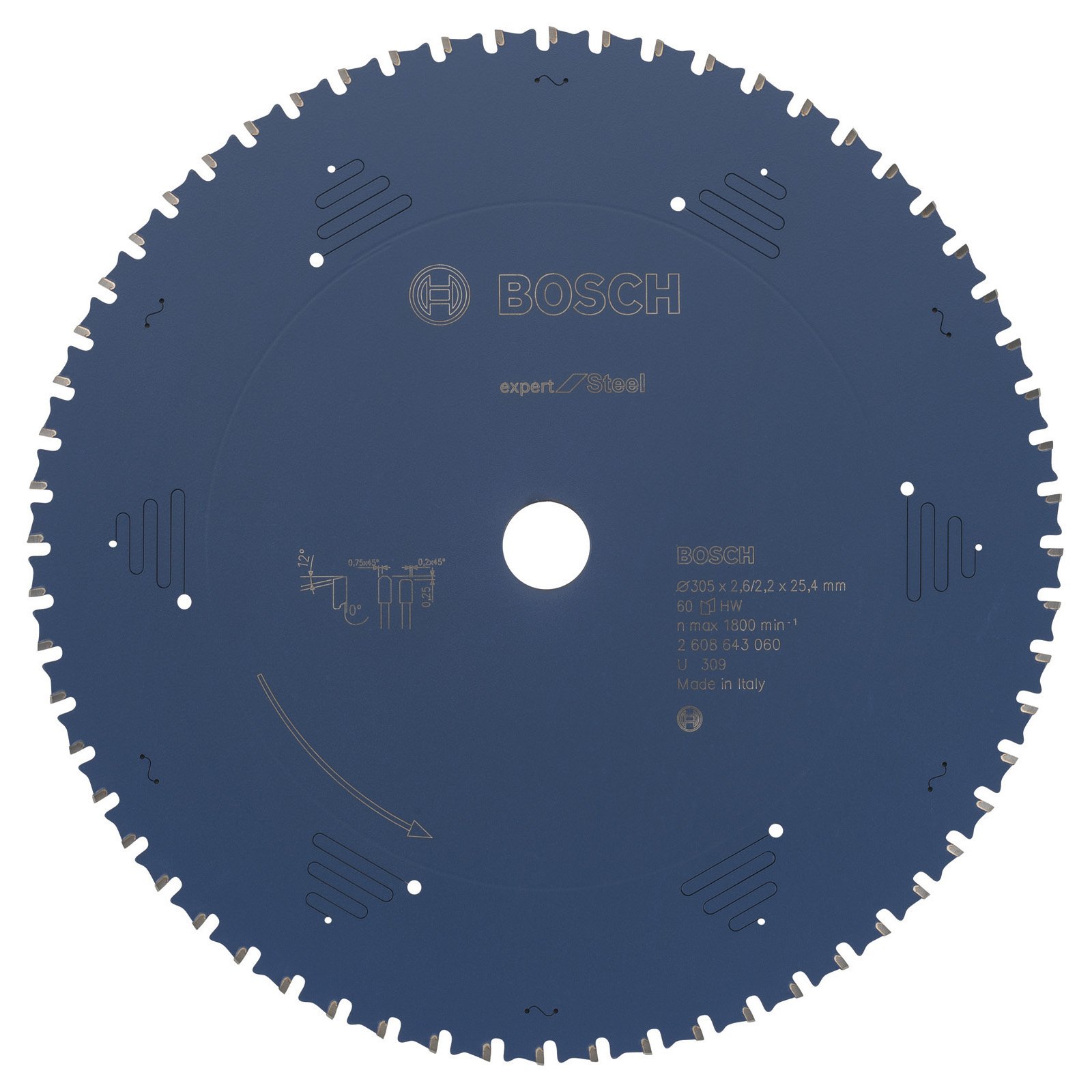 • 1x Bosch Kreissägeblatt Expert for Steel für Kapp- und Gehrungssägen 305 x 25,4 x 2,6 mm 60
