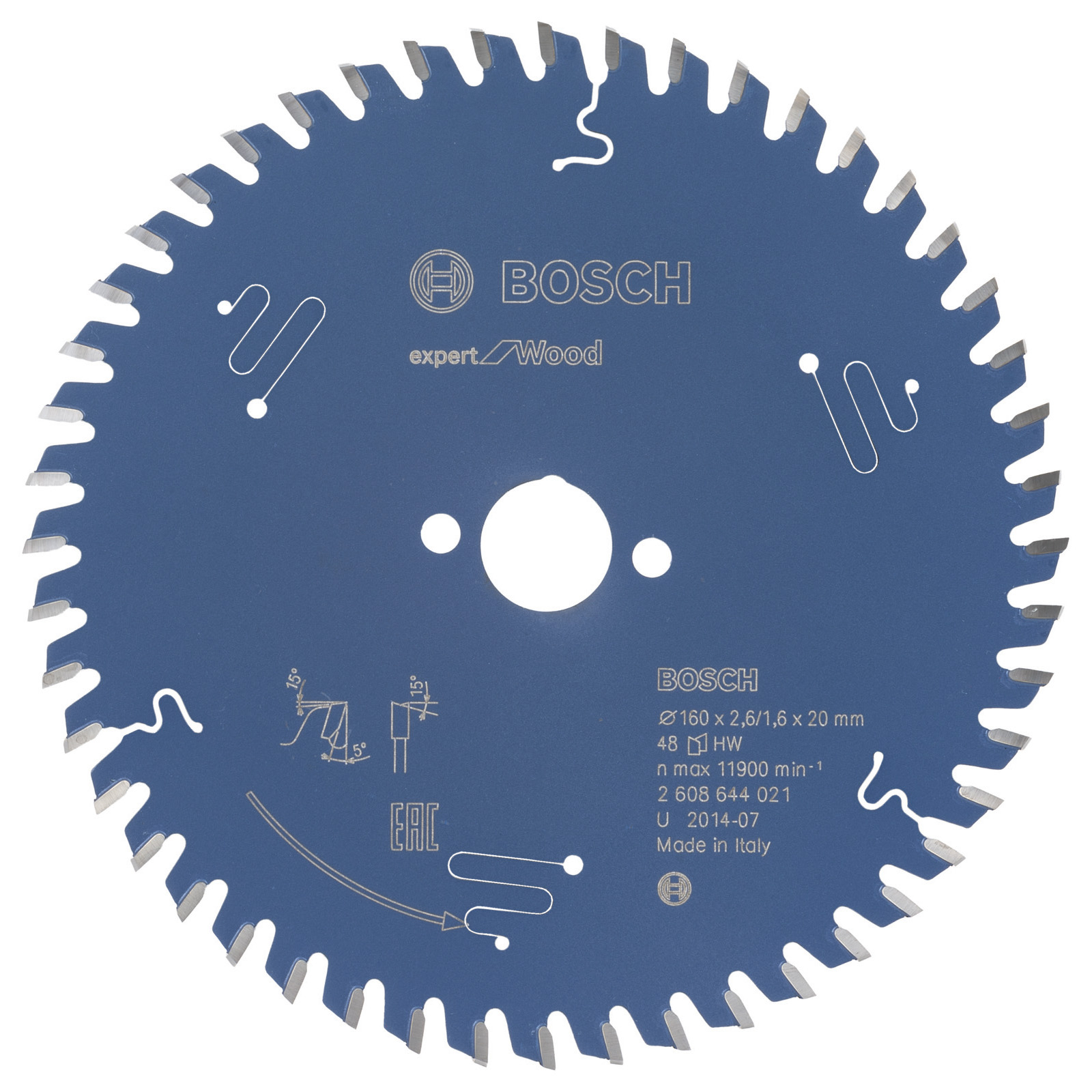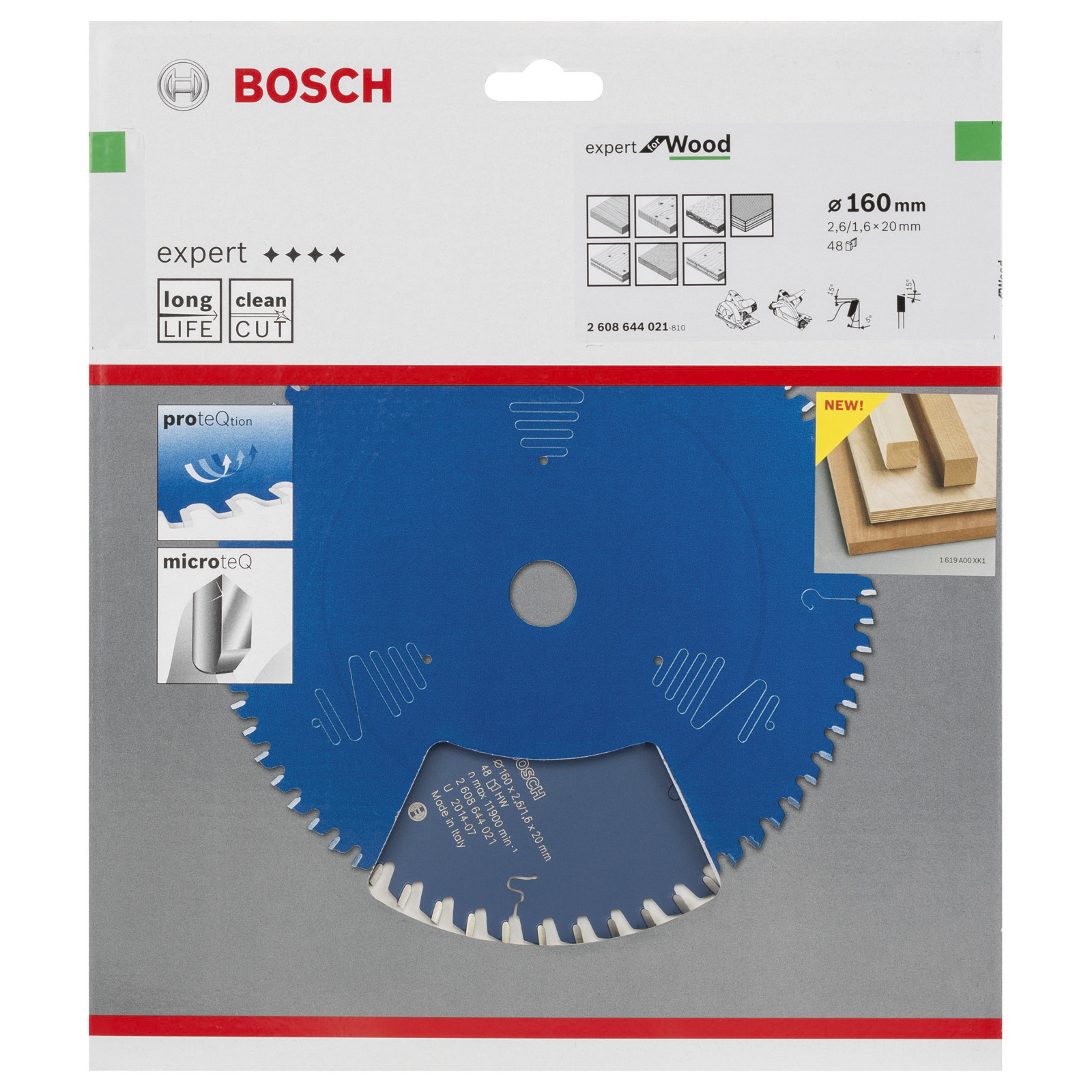 - 1x Bosch Kreissägeblatt Expert for Wood für Handkreissägen 160 x 20 x 2,6 mm 48