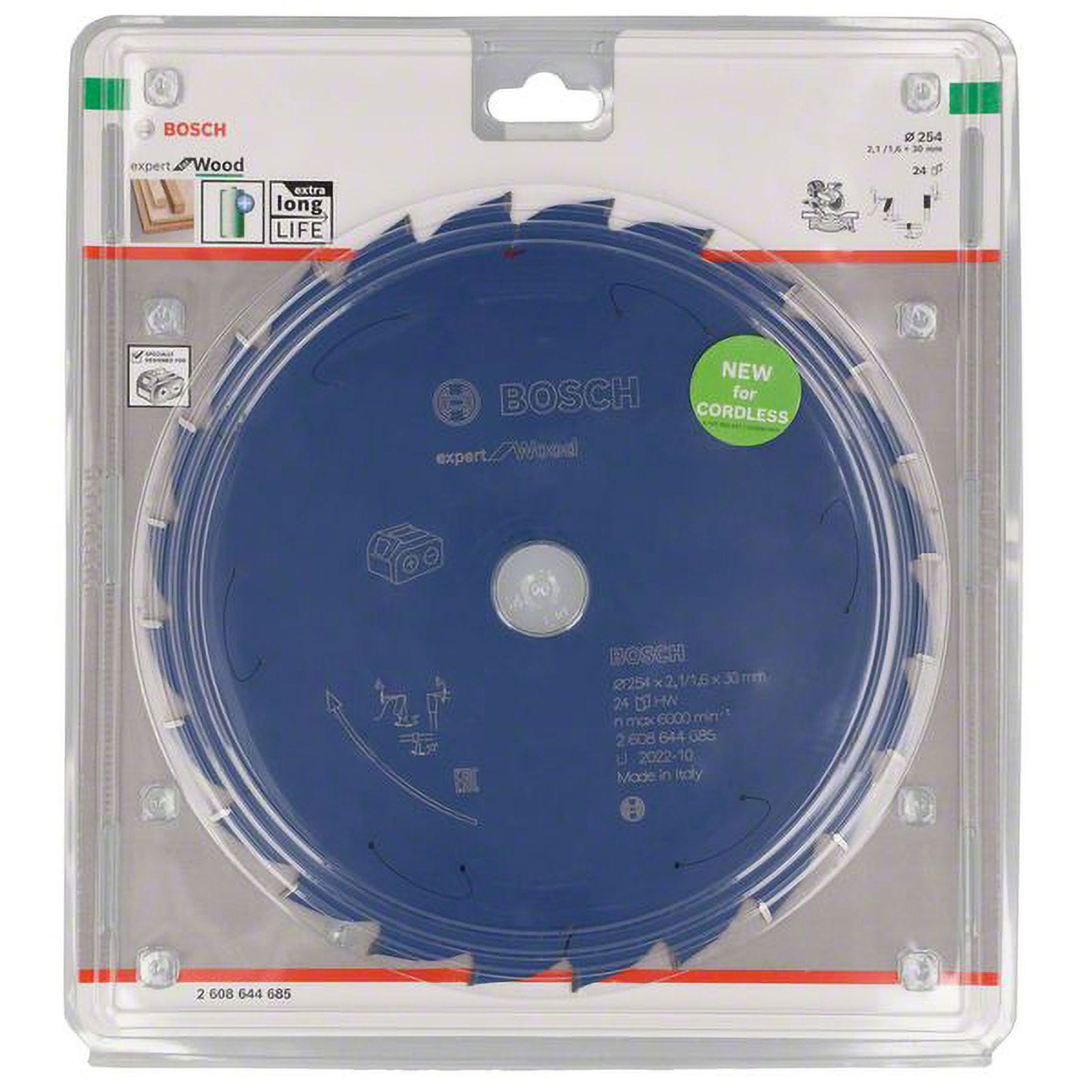 - 1x Bosch Kreissägeblatt für Akkusägen Expert for Wood, 254 x 2,1/1,6 x 30, 24 Zähne