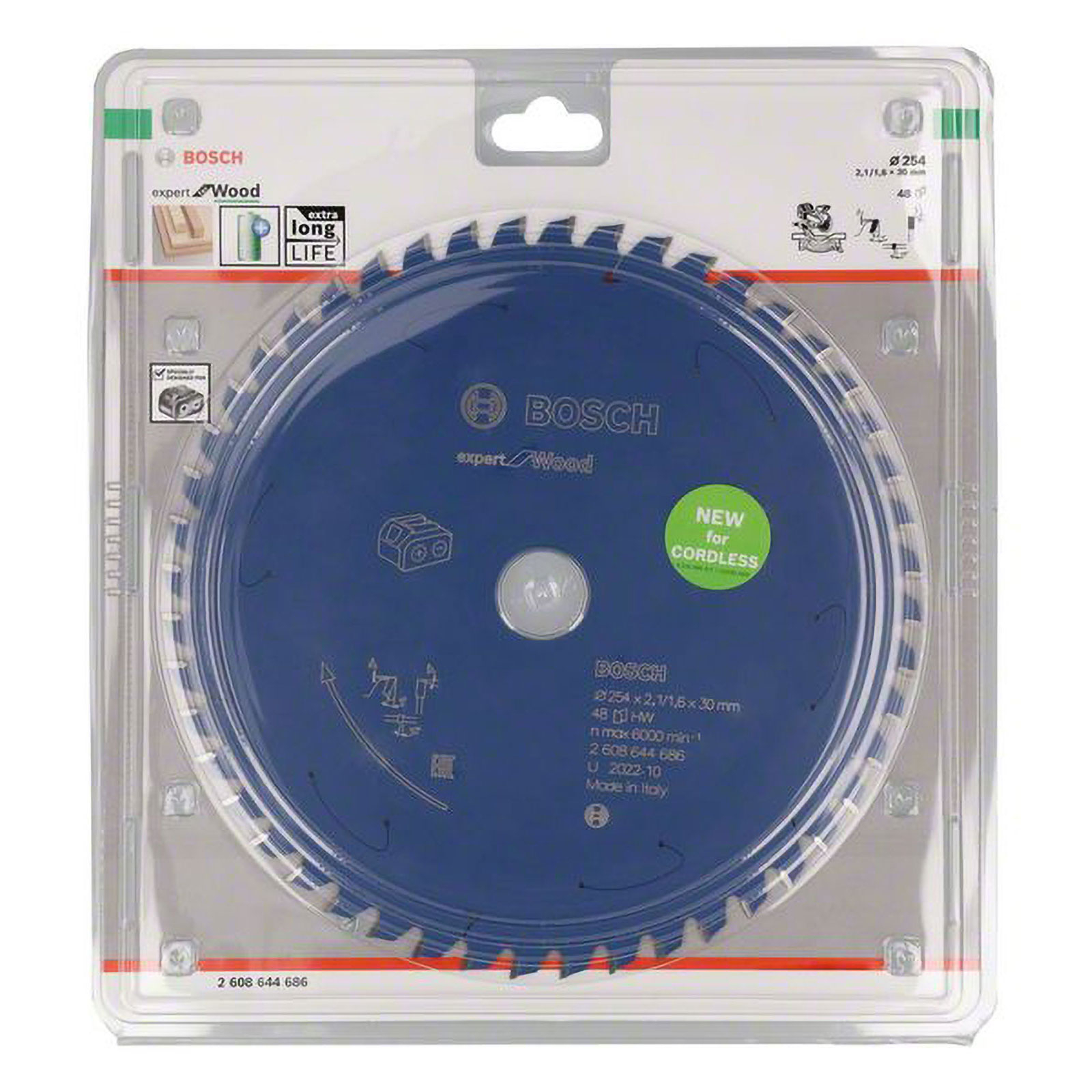- 1x Bosch Kreissägeblatt für Akkusägen Expert for Wood, 254 x 2,1/1,6 x 30, 48 Zähne