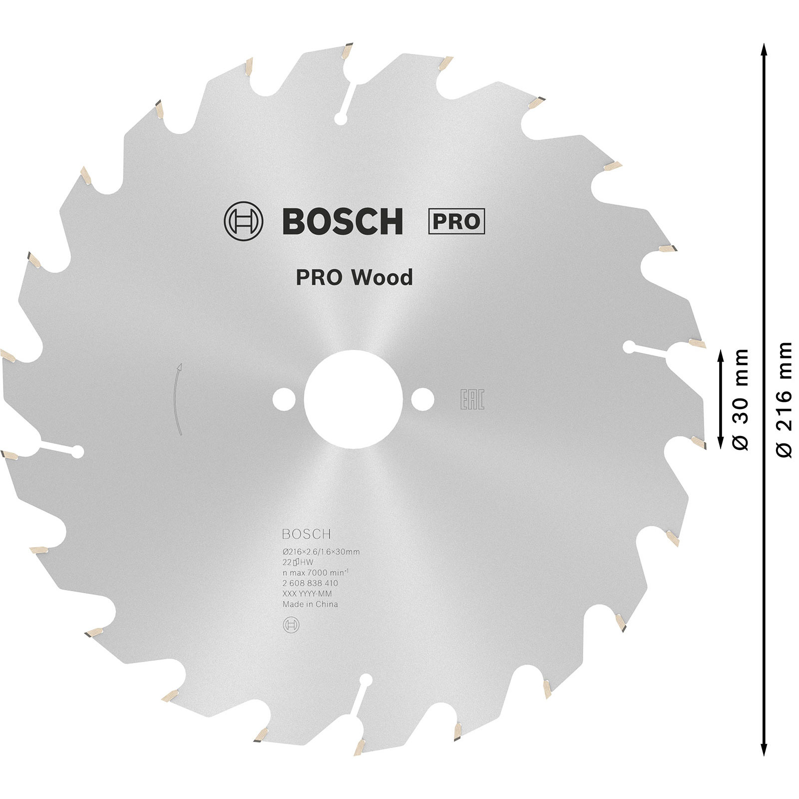 "Bosch PRO Wood Kreissägeblatt 216 x 2,6 x 30 mm - 2608838410"