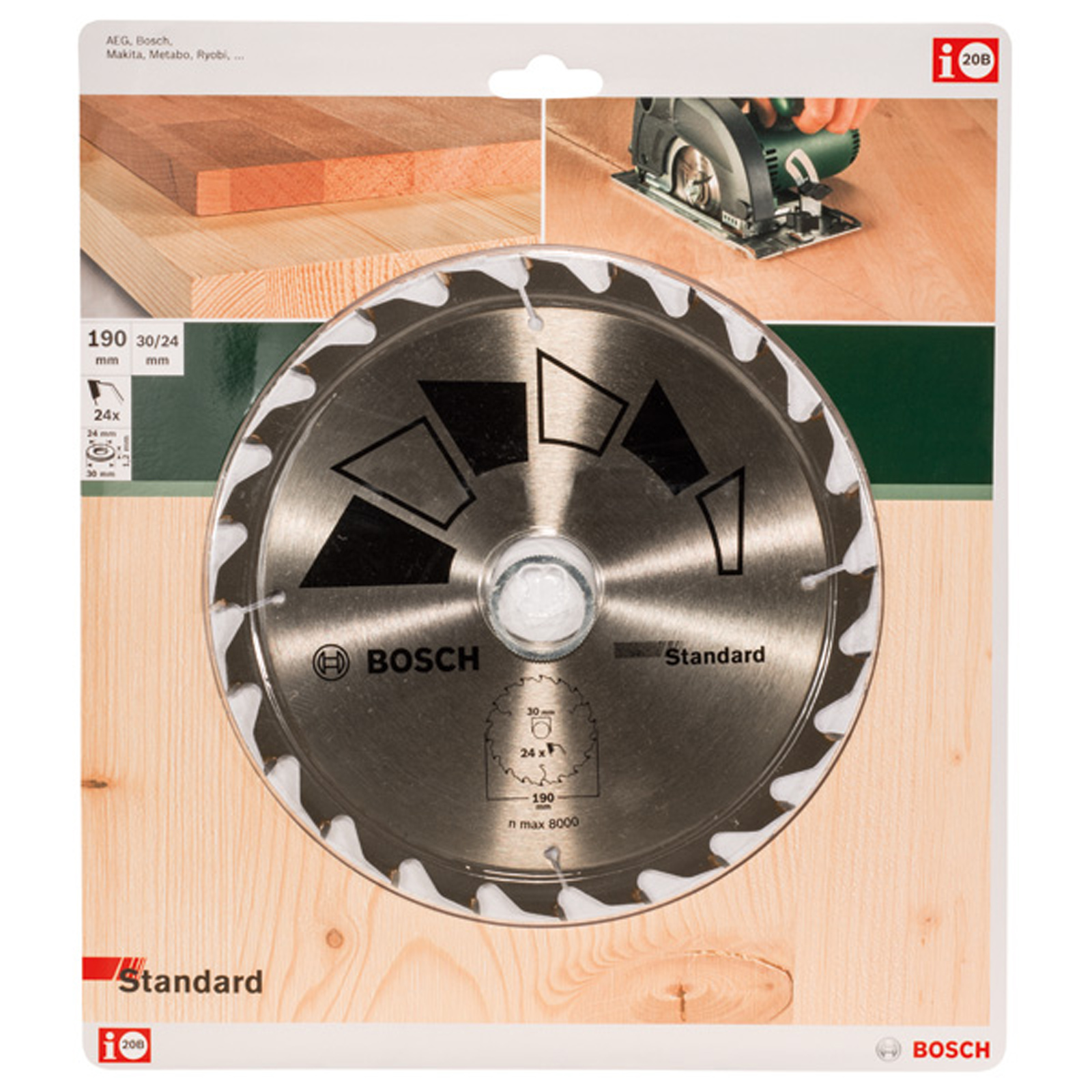 - 1x Bosch Kreissägeblatt STANDARD D= 190 mm Bohrung= 30 mm Z= 24