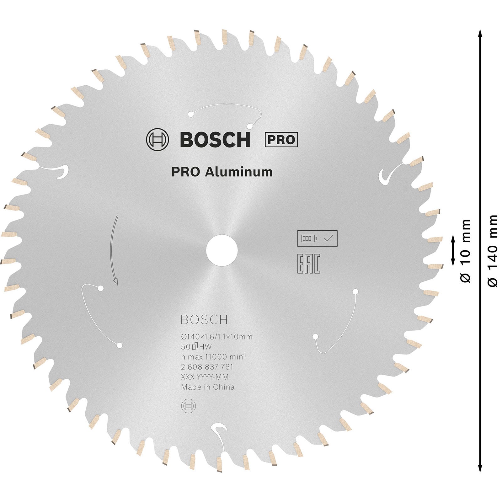 "Bosch PRO Aluminium cordless Blatt für Kreissägen 140 x 1,6 x 10 mm - 2608837761"