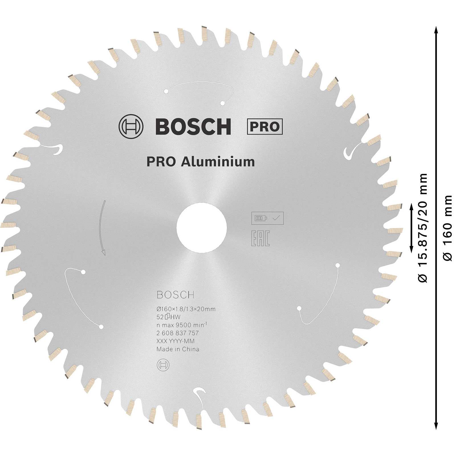 "Bosch PRO Aluminium cordless Blatt für Kreissägen 160 x 1,8 x 20 mm - 2608837757"