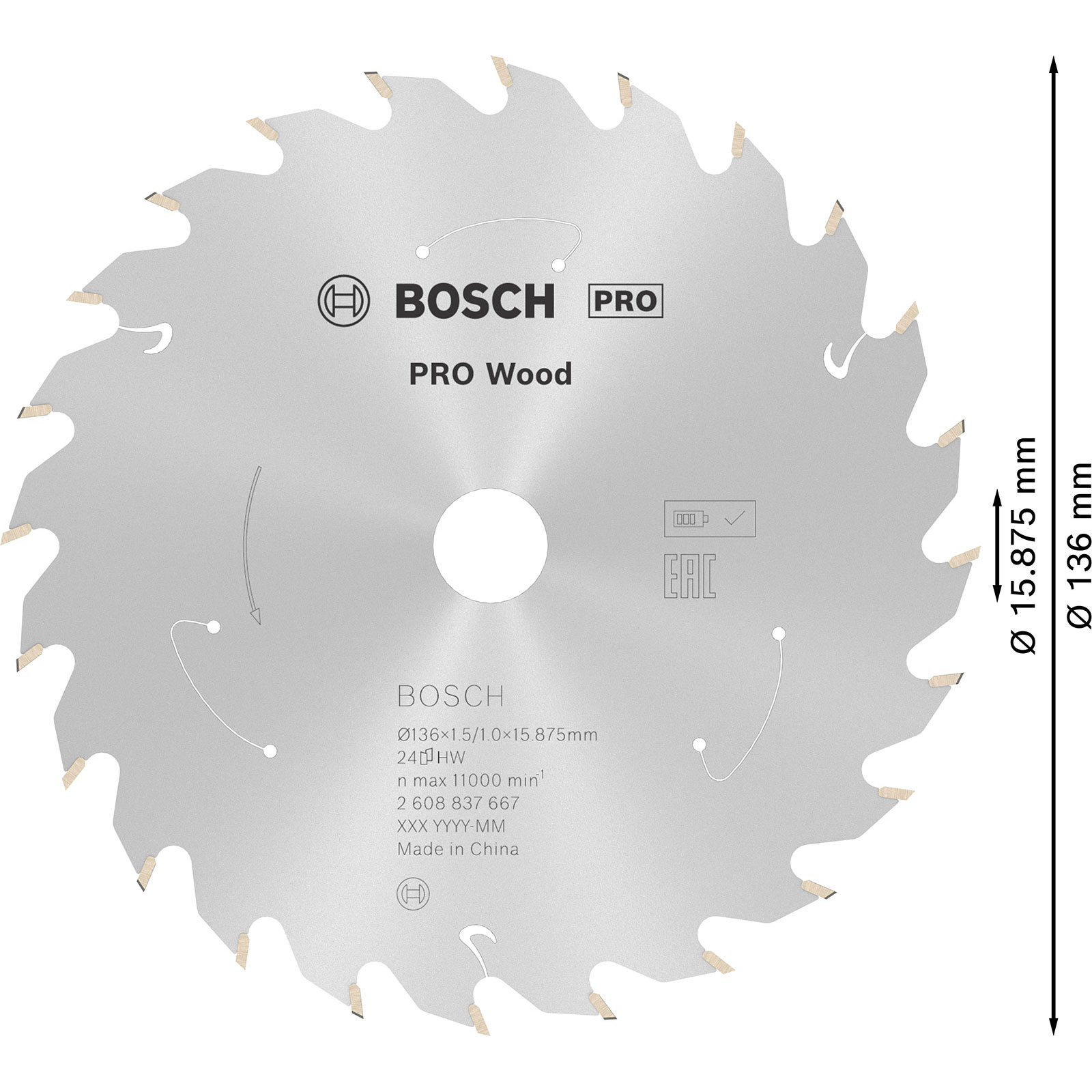 "Bosch PRO Wood cordless Blatt für Kreissägen 136 x 1,5 x 15,875 mm - 2608837667"