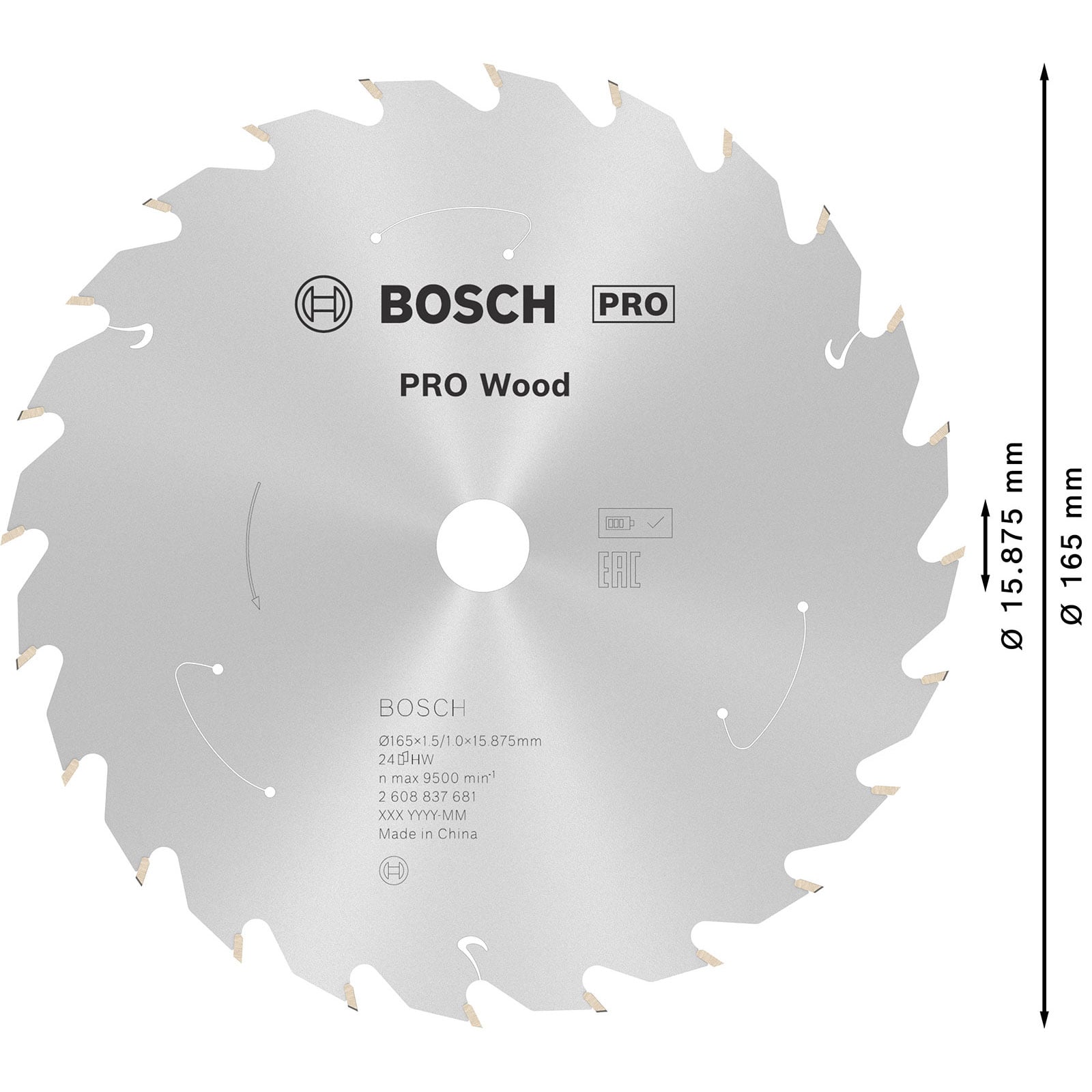 "Bosch PRO Wood cordless Blatt für Kreissägen 165 x 1,5 x 15,875 mm - 2608837681"