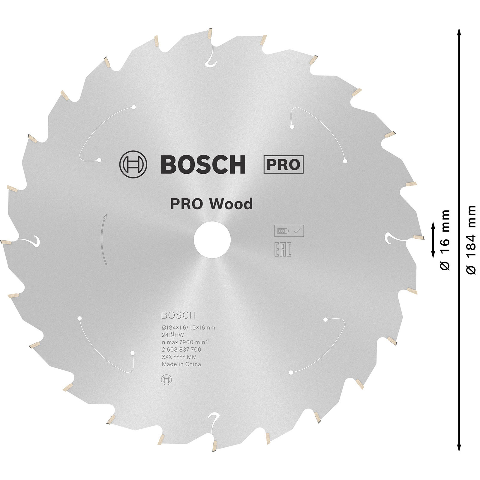 "Bosch PRO Wood cordless Blatt für Kreissägen 184 x 1,6 x 16 mm - 2608837700"