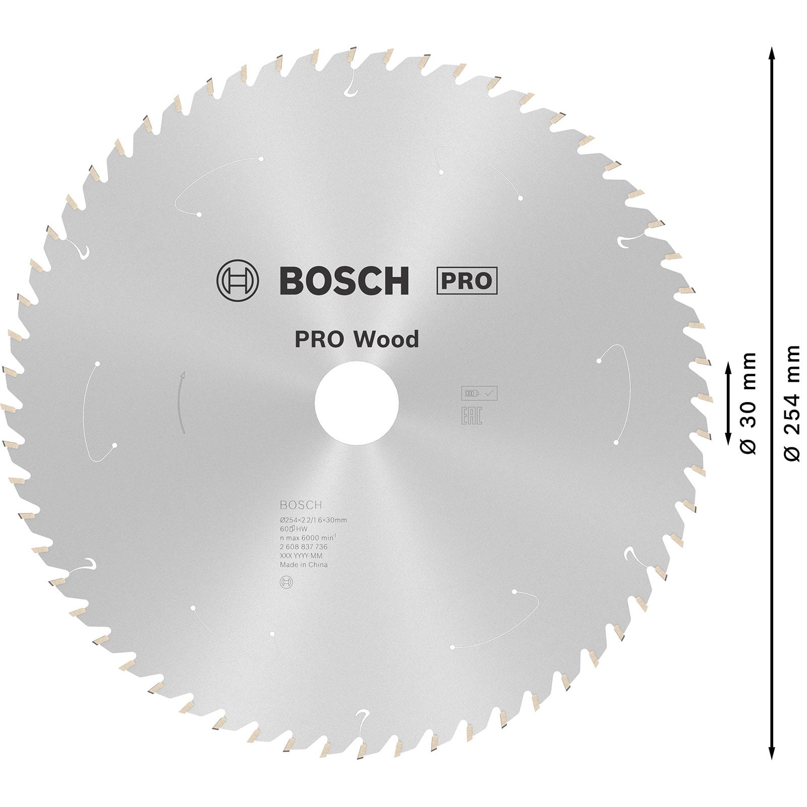 "Bosch PRO Wood cordless Blatt für Kreissägen 254 x 2,2 x 30 mm - 2608837736"