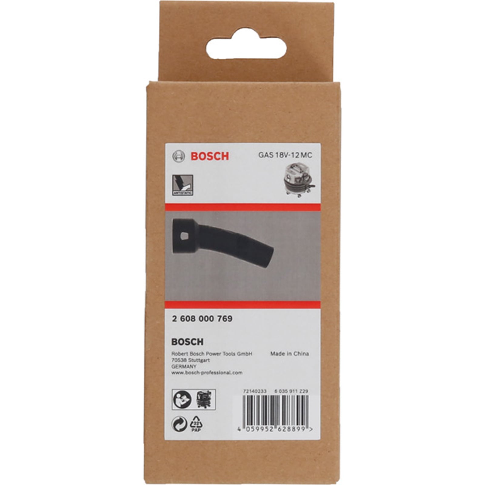 "Bosch Krümmerrohr (antistatisch), 75 x 50 x 148 mm. Für Staubsauger - 2608000769"