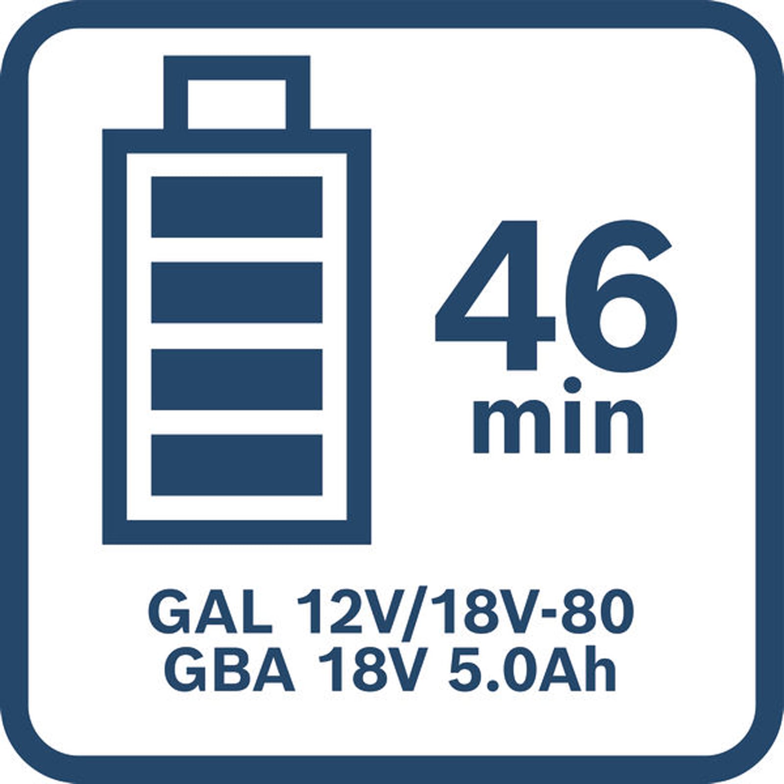 - Das GAL 12V/18V-80 Professional ist mit dem Bosch Professional 18V und 12V System kompatibel.