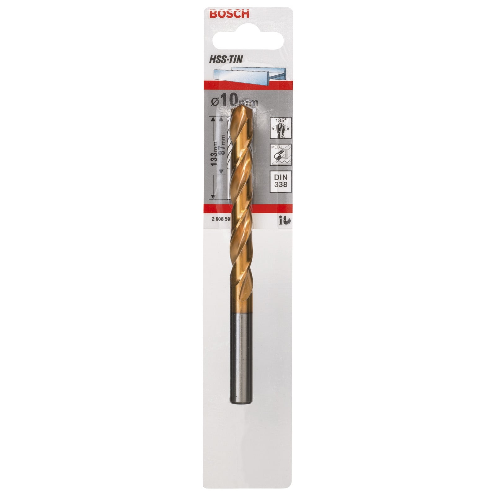 "Bosch Metallbohrer HSS-TiN DIN 338 10 x 87 x 133 mm - 2608596751"