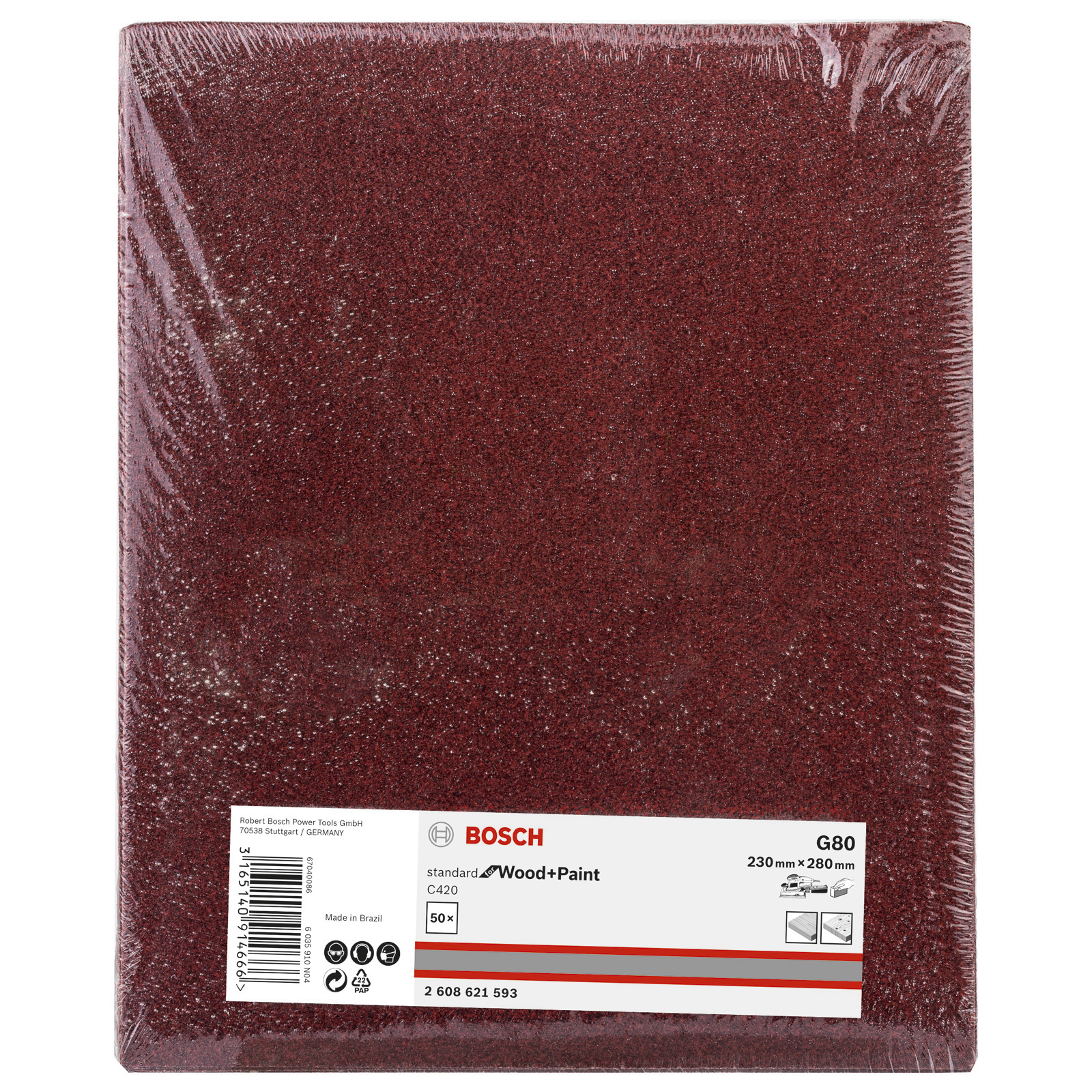"Bosch 50x Papierschleifblatt C420 Standard for Wood and Paint 230 x 280 mm 80 - 2608621593"