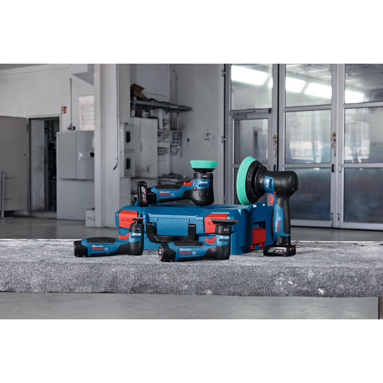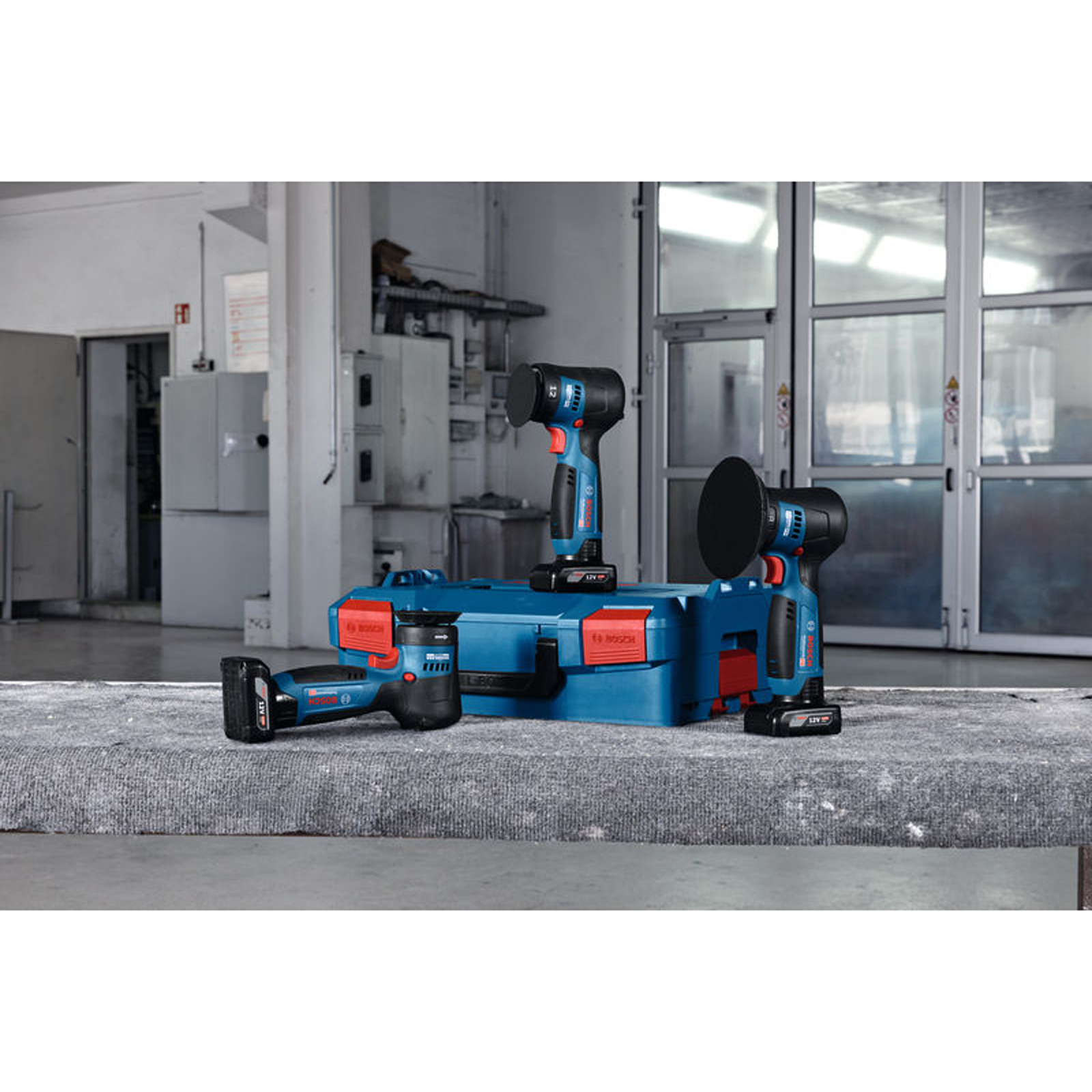 - Es ist mit allen GBA 12V-Akkus kompatibel. Der GPO 12V-77 verfügt über einen 77-mm-Polierteller mit einem Maulschlüssel für einfachen Schleiftellerwechsel.