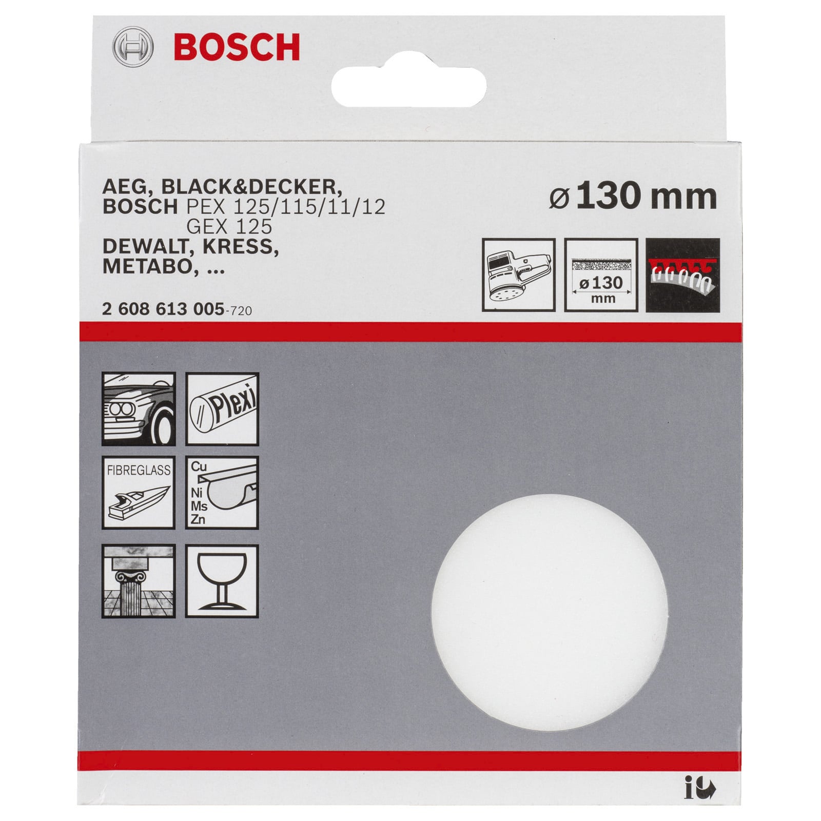 - 1x Bosch Polierschwamm für Exzenterschleifer, Klett, 130 mm -2608613005