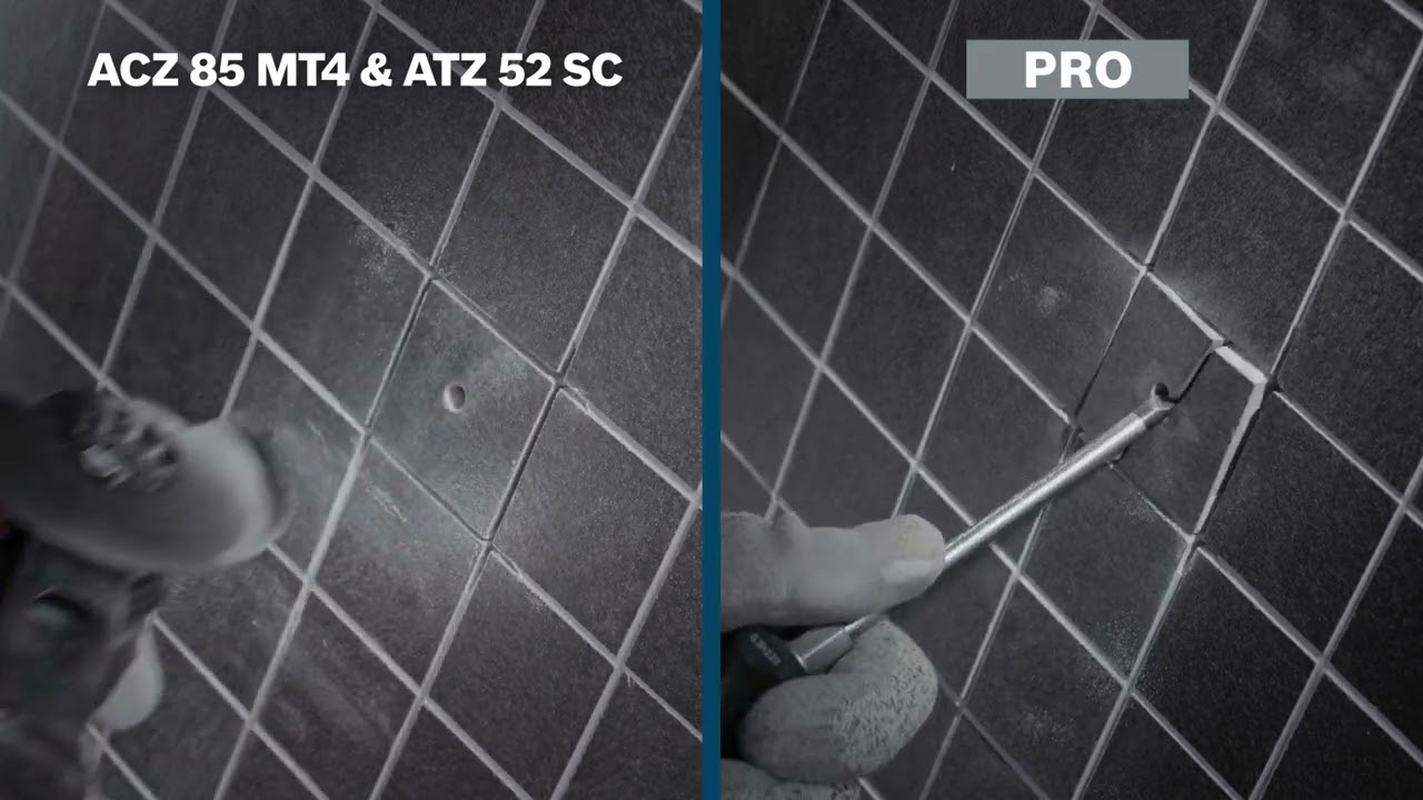 - Dank seines cleveren Designs erreichst du mit dem PRO AIZ 32 RT5 die Fugen um kleine Fliesen herum und kannst den alten Mörtel dahinter sauber abschleifen.