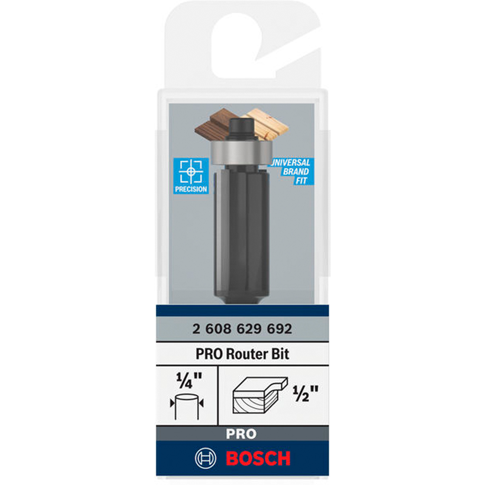 "Bosch PRO Bündigfräser mit untenliegendem Führungskugellager Ø 1/2 x L 1 Schaft 1/4 - 2608629692"