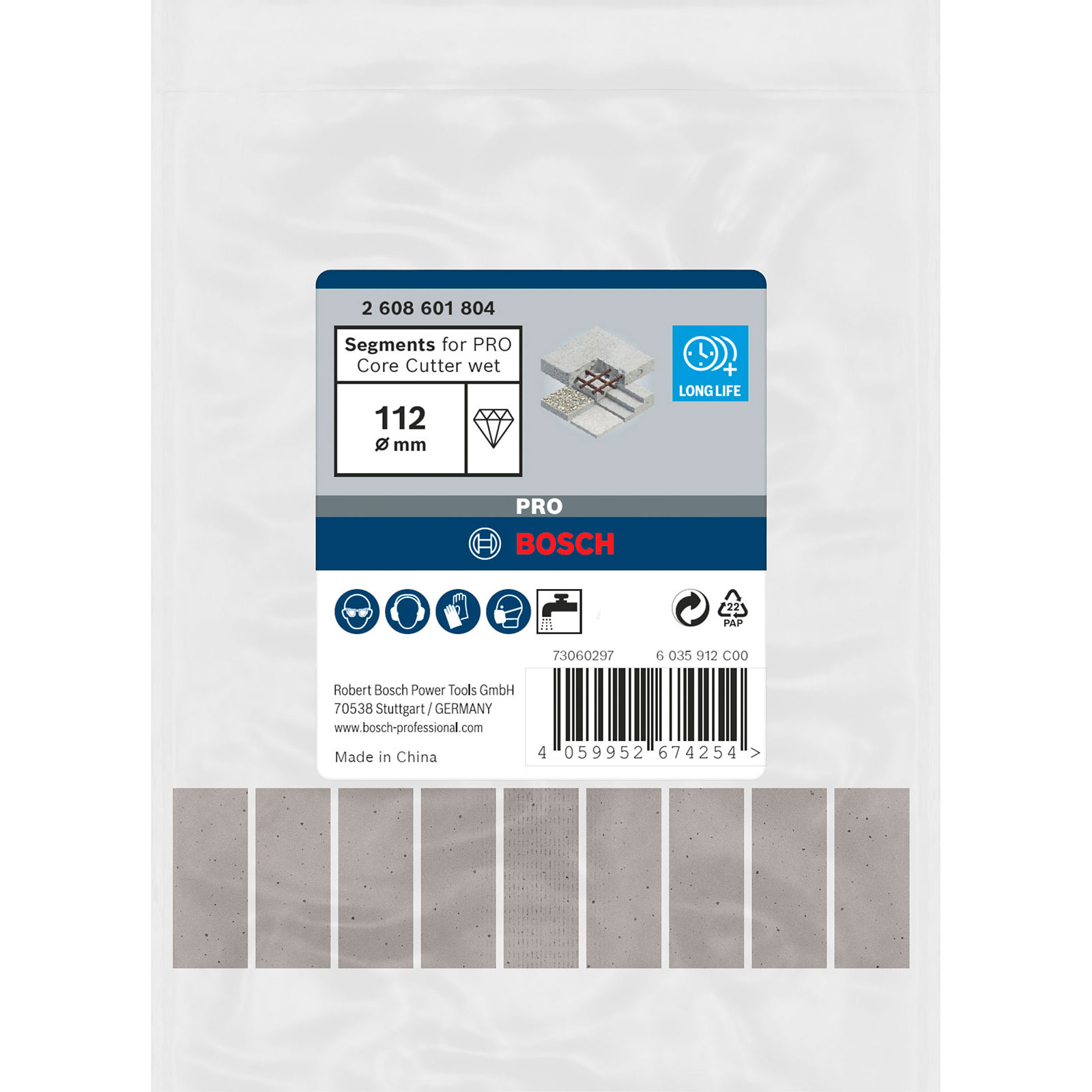 - Die beeindruckende Haltbarkeit des PRO Core Cutter wet ist auf zwei Markenzeichen von Bosch zurückzuführen.